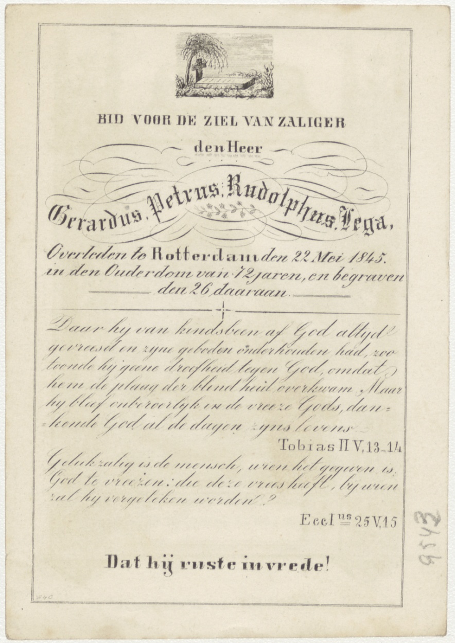 H. Aloysius van Gonzaga (Frans), kz. Bid voor ziel Gerardus Petrus Rudolphus Lega (+1845) Rotterdam