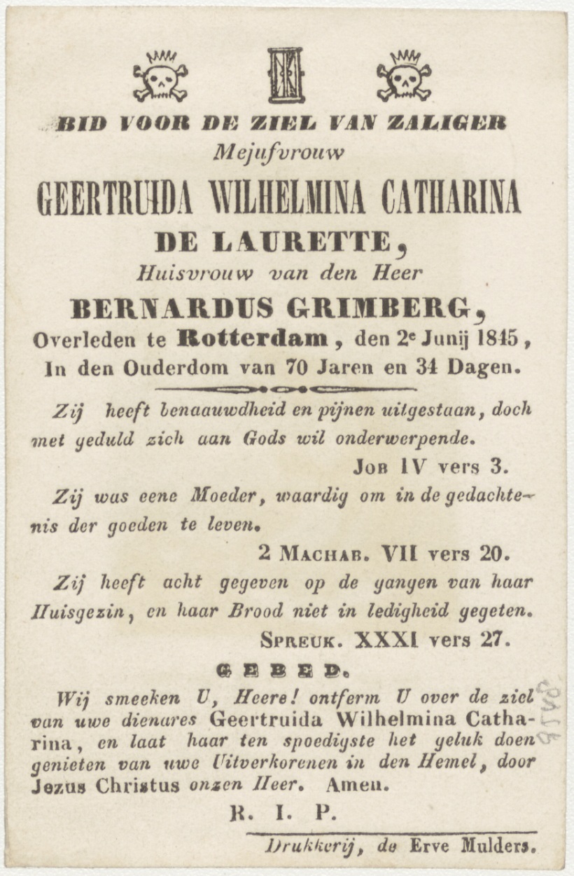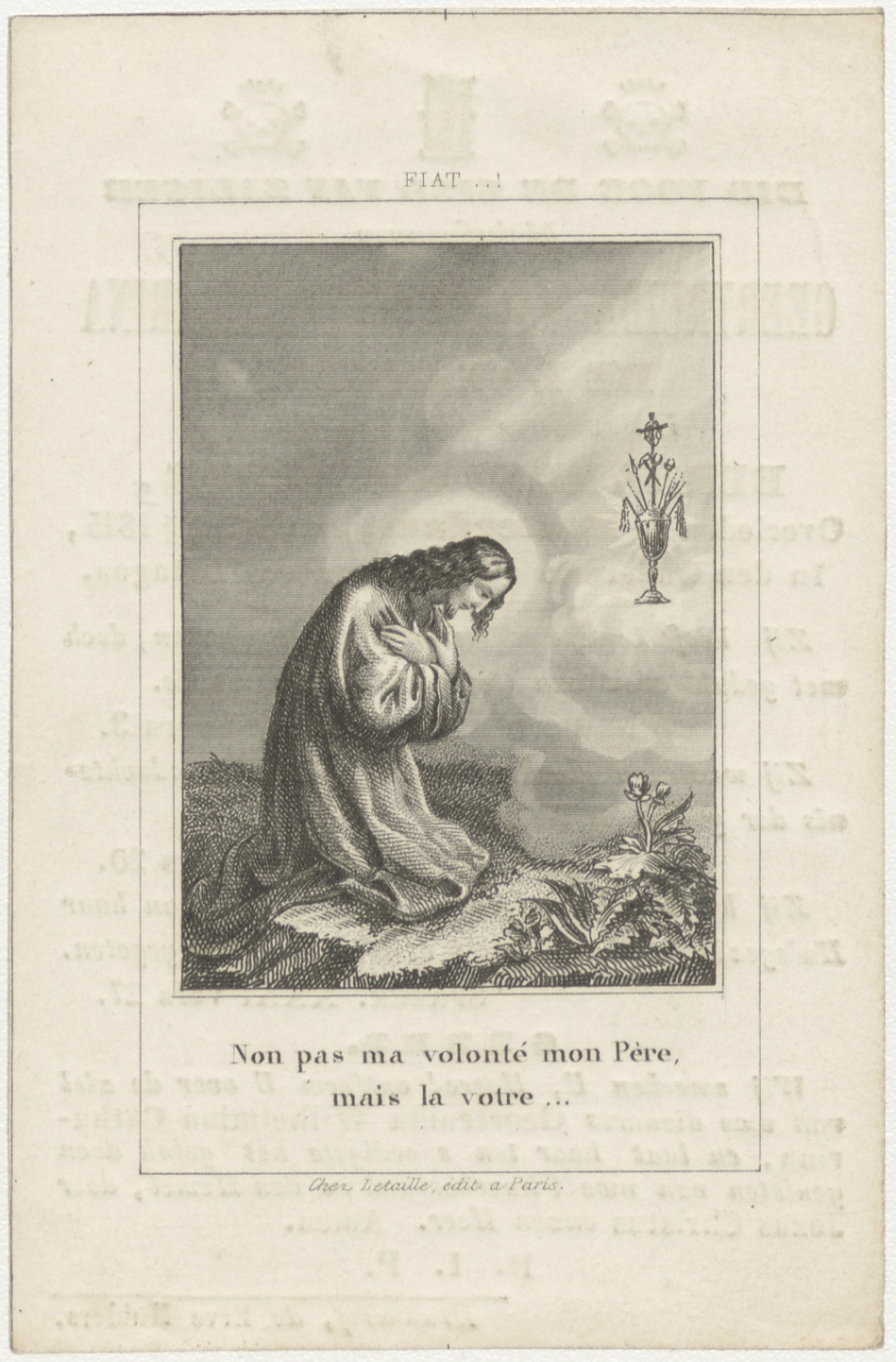 Christus ontvangt het H. Sacrament in de hof van olijven (Frans), kz. Bid voor ziel De Laurette-Grimberg (+1845) Rotterdam