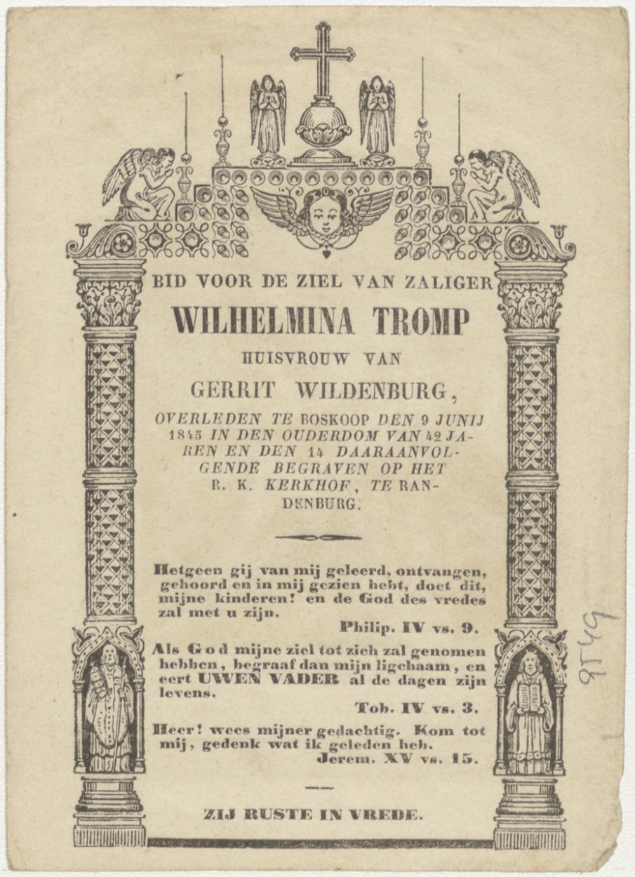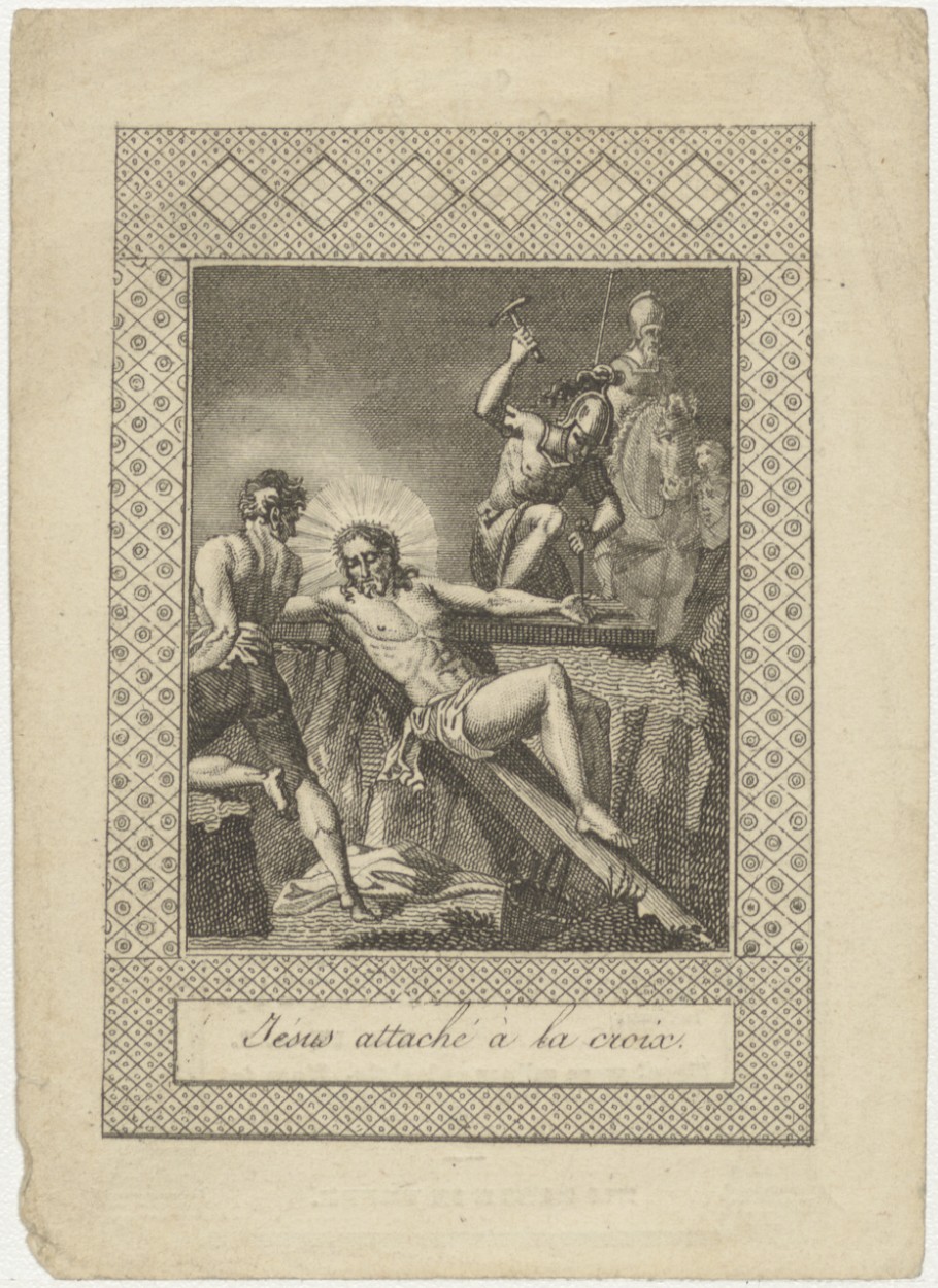 Christus wordt aan het kruis genageld (Frans), kz. Bid voor ziel Tromp-Wildenburg (+1845) Boskoop