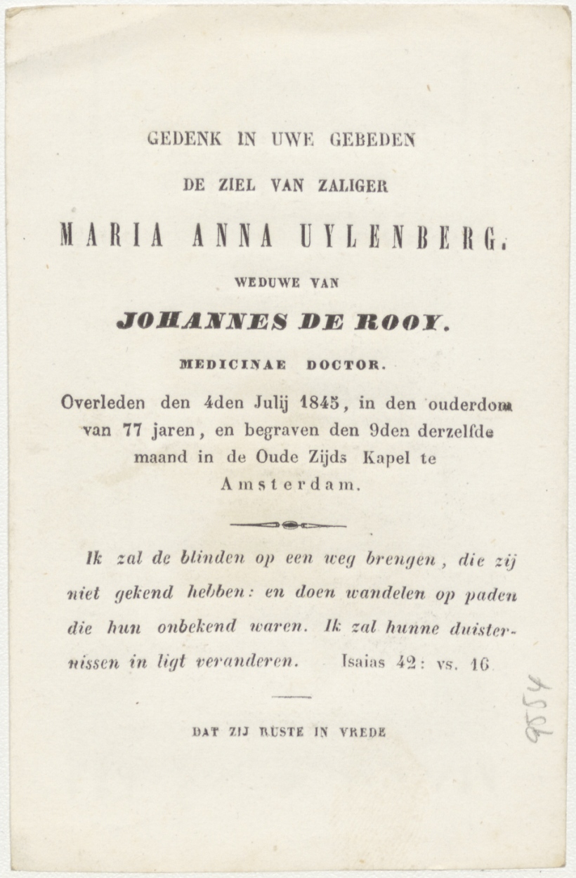 H. Vincent de Paul (Frans), kz. Bid voor ziel Kuylenberg-de Rooy (+1845) Amsterdam