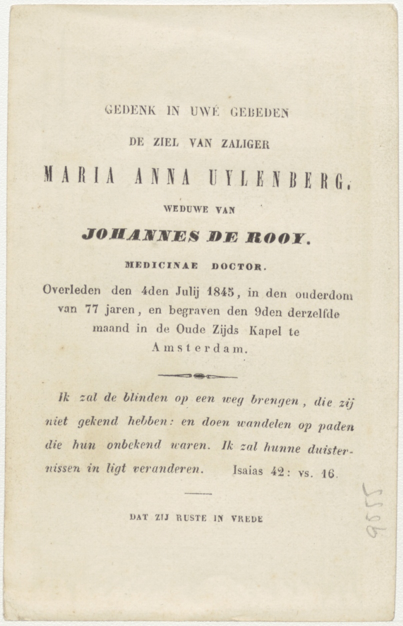 H. Cecile (Frans), kz. Bid voor ziel Kuylenberg-de Rooy (+1845) Amsterdam