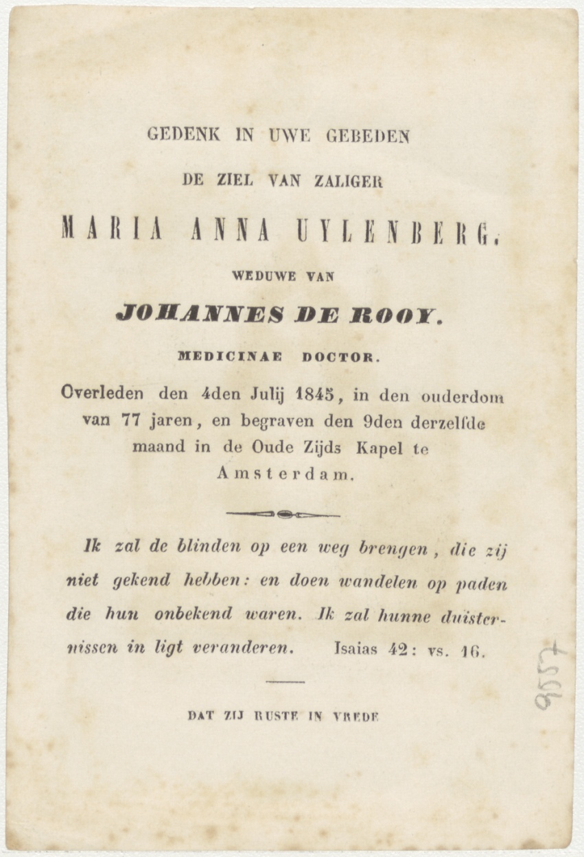 Neem deel aan het festijn, (Frans) Christus met gelovigen, kz. Bid voor ziel Kuylenberg-de Rooy (+1845) Amsterdam