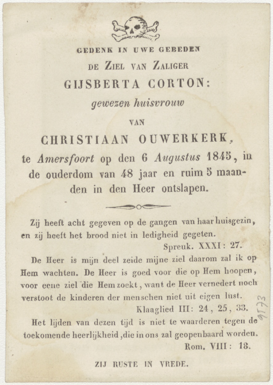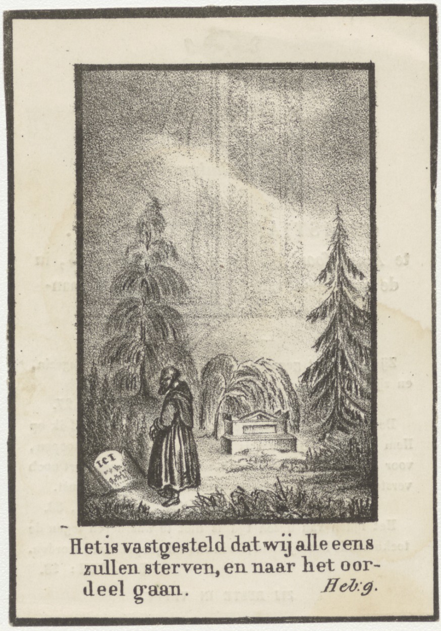 Het is vastgesteld... kerkhofscène, kz. Bid voor ziel Corton-Ouwerkerk (+1845) Amersfoort