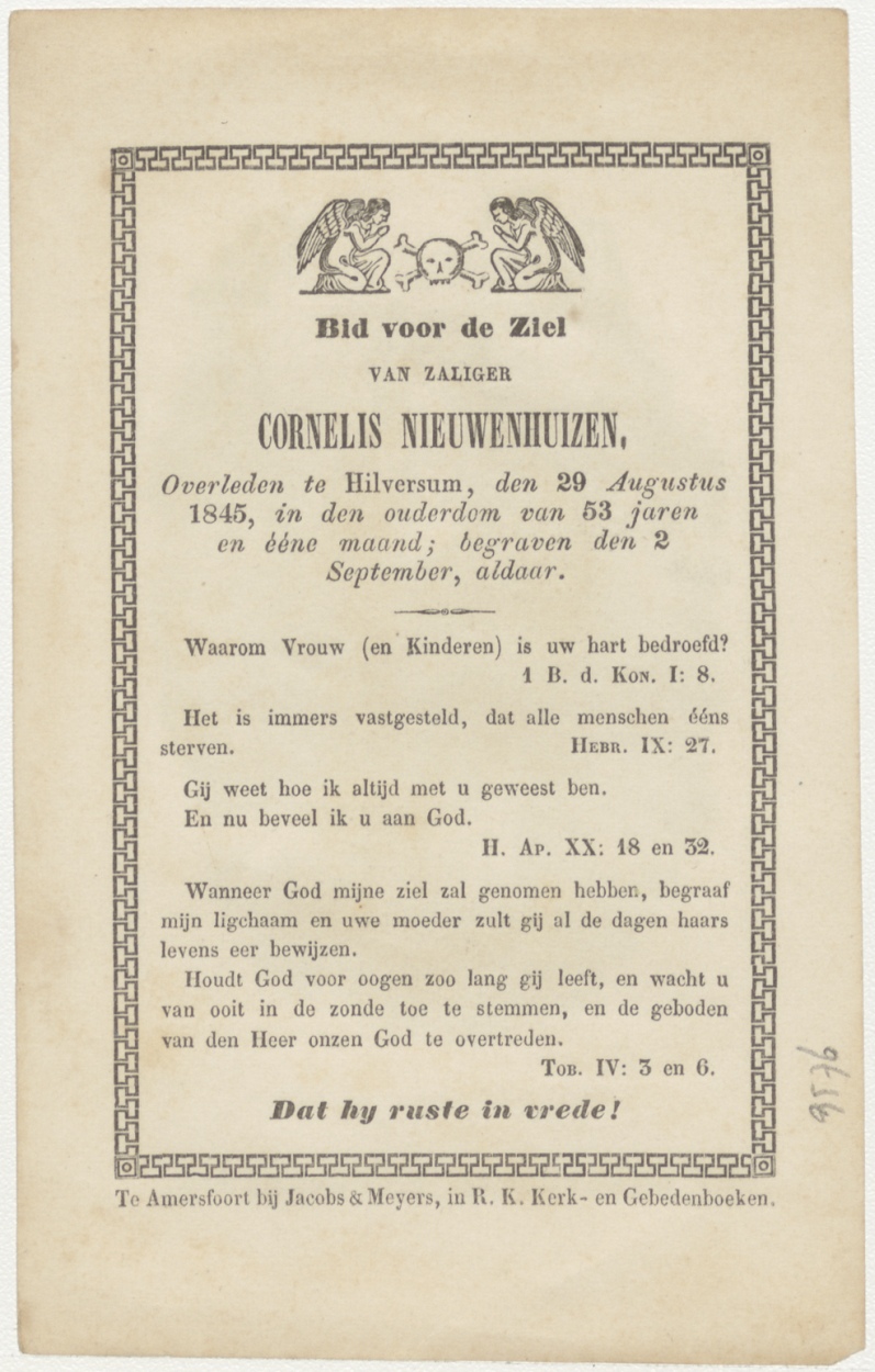 Maria onbevlekt ontvangenis, kz. Bid voor ziel Nieuwenhuizen (+1845) Hilversum