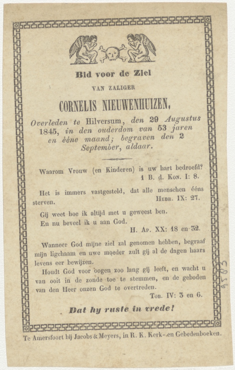 Hemelvaart van Maria, kz. Bid voor ziel Nieuwenhuizen (+1845) Hilversum