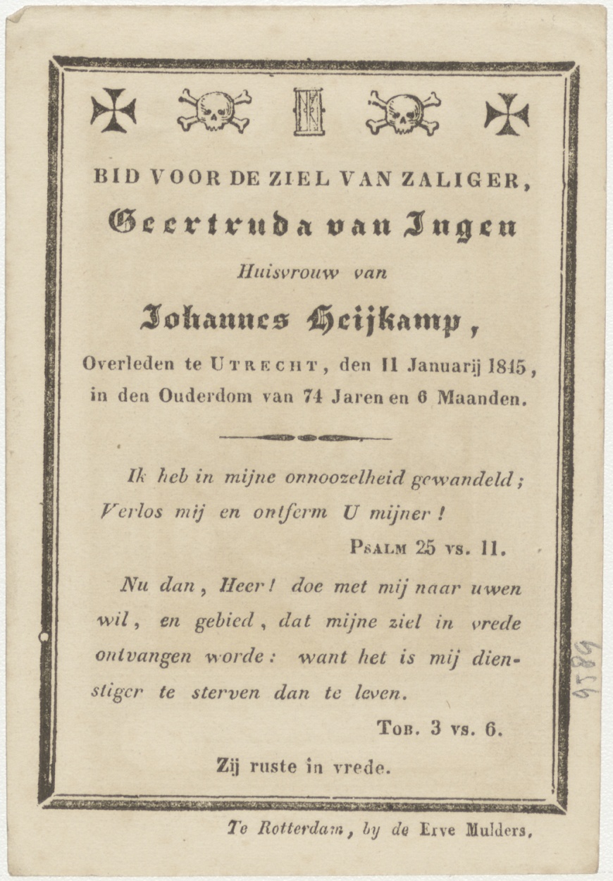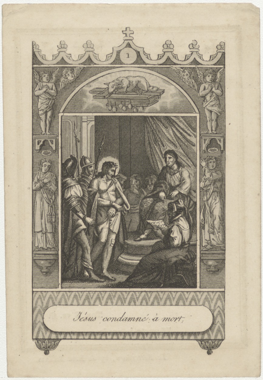 Passiescène (1e statie): Christus wordt ter dood veroordeeld (Frans), kz. Bid voor ziel Van Ingen-Heykamp (+1845) Utrecht