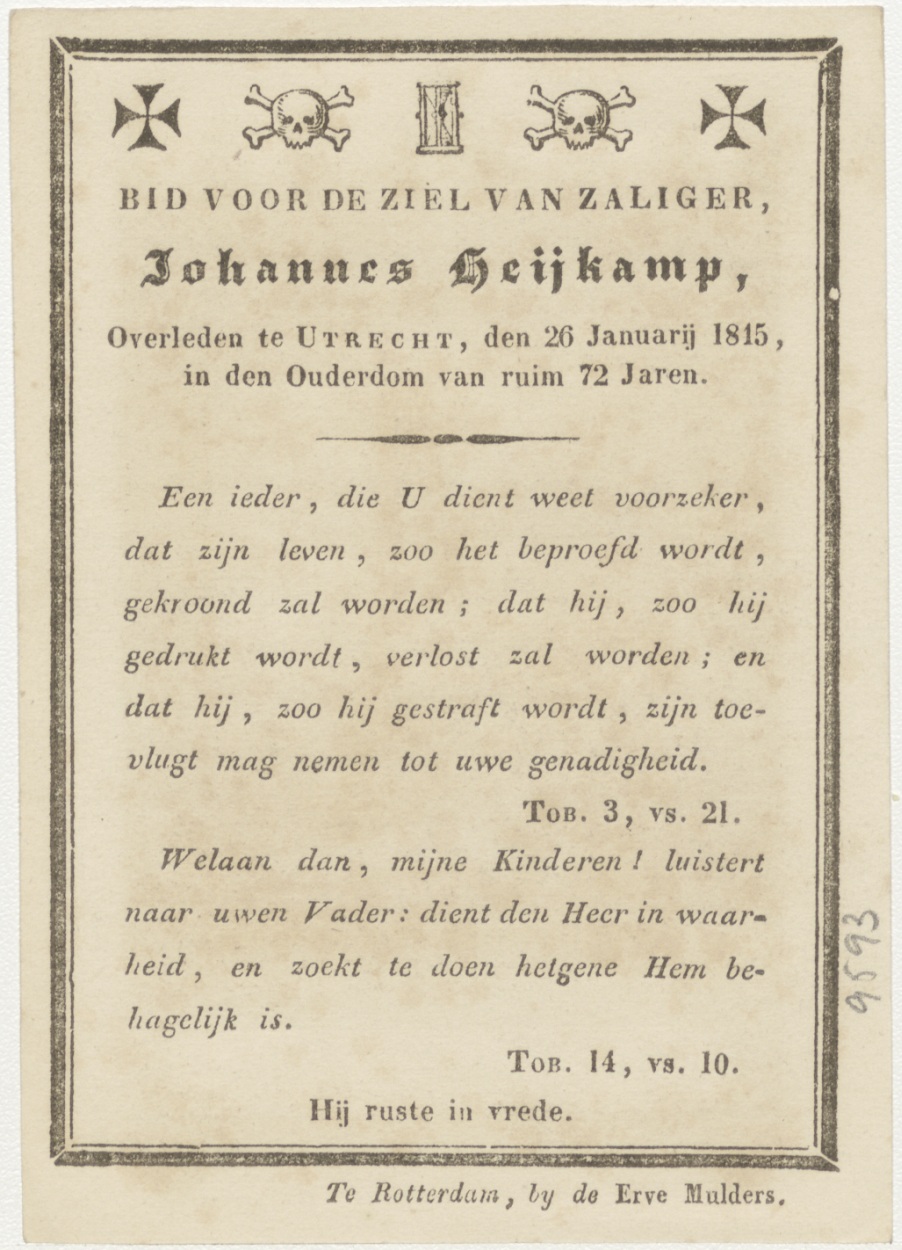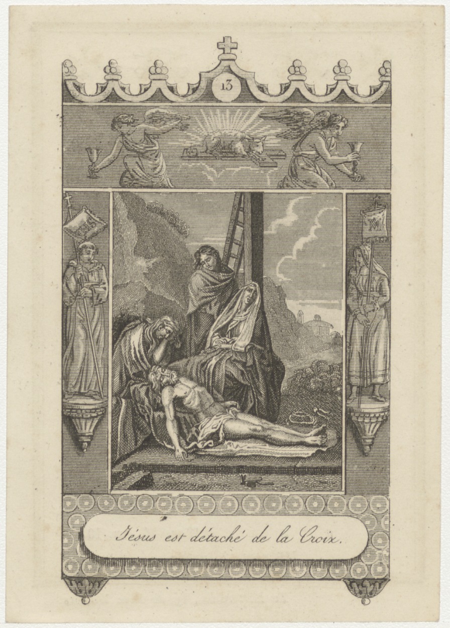 Passiescène (13e statie) Christus wordt van het kruis gehaald (Frans), kz. Bid voor ziel Heykamp (+1845) Utrecht