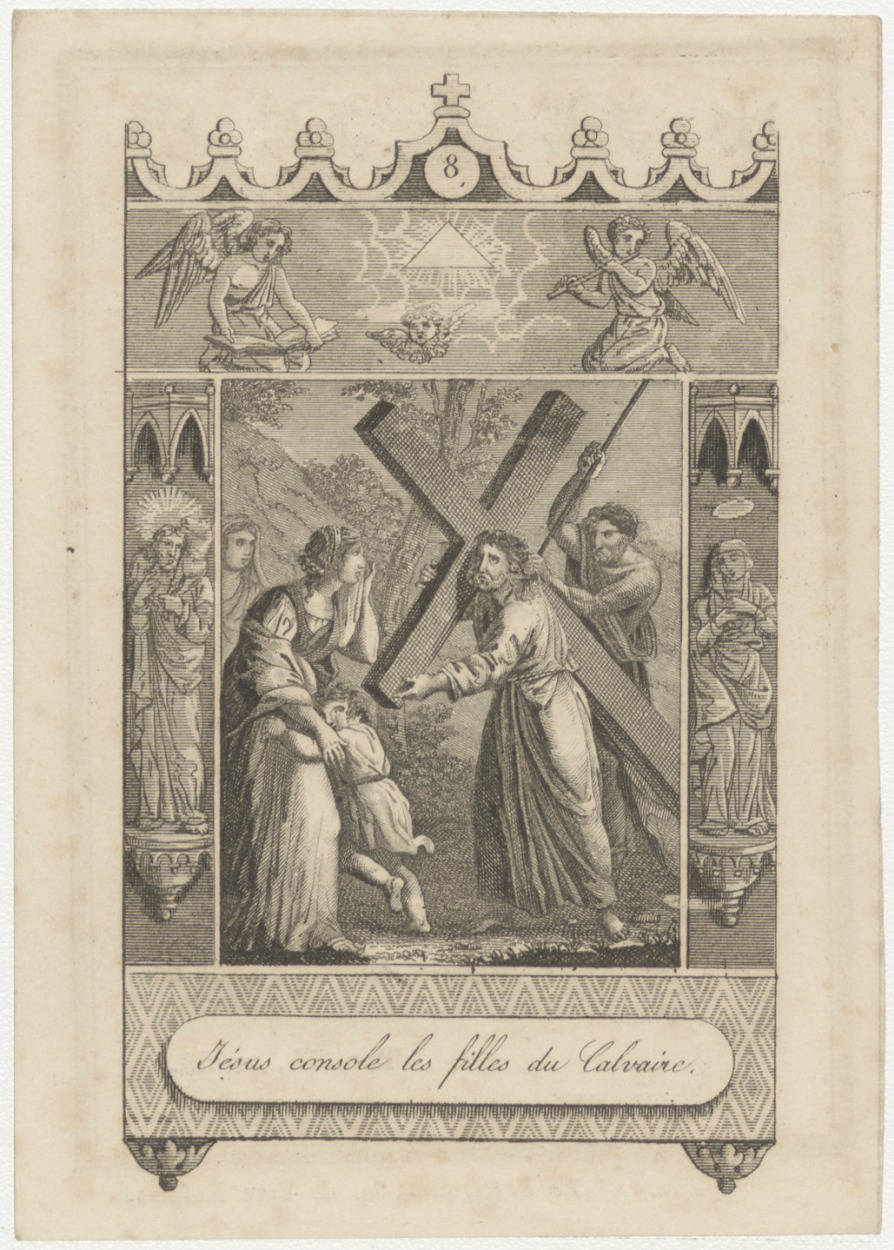 Passiescène (8e statie) Christus wordt getroost door de kinderen van Calvaire (Frans), kz. Bid voor ziel Heykamp (+1845) Utrecht