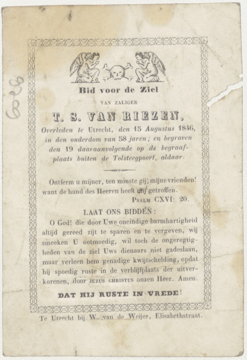 H. Marguerite (Frans), kz. Bid voor ziel Van Riezen (+1846) Utrecht