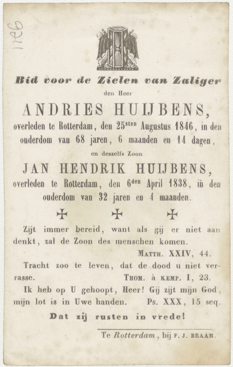 H. Constance, kz. Bid voor ziel Huybens (+1846) Rotterdam; dubbelgebruik