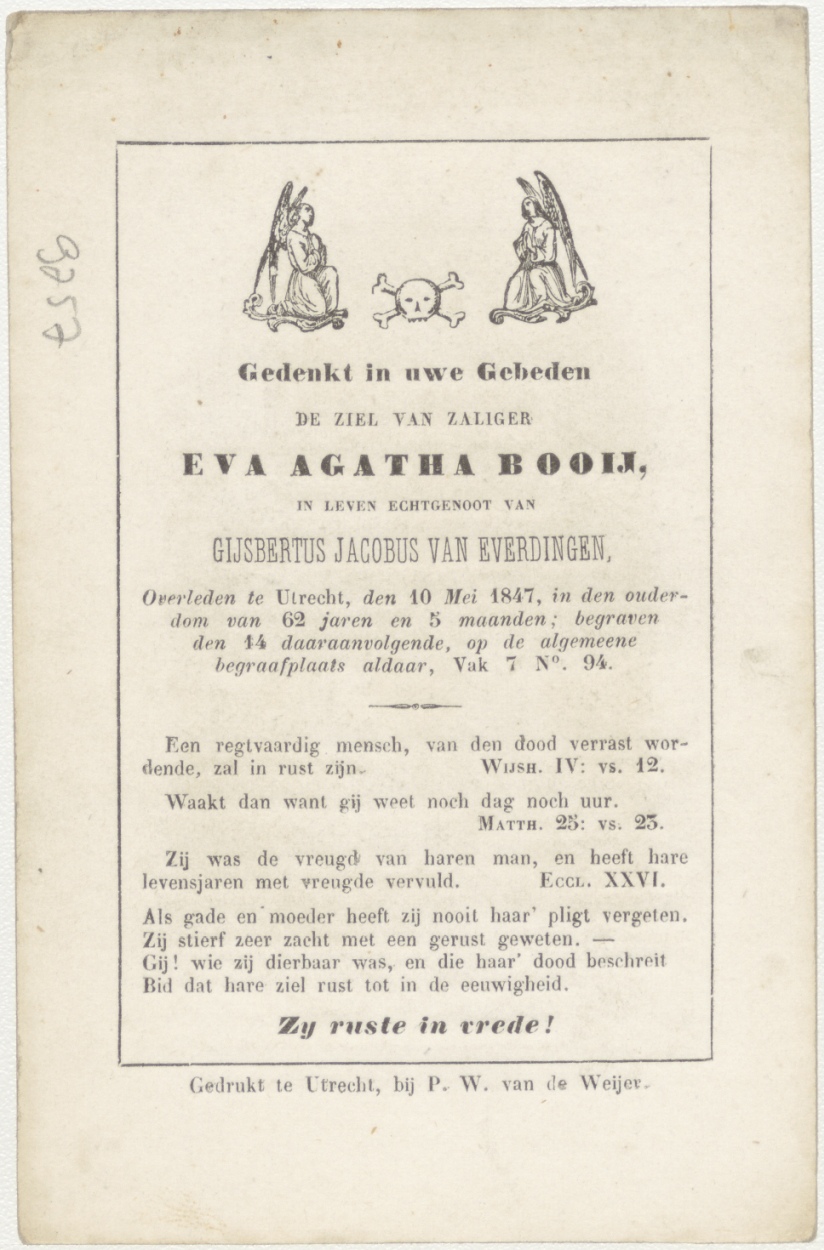 Geboorte van Christus (Frans), kz. Bid voor ziel Booy-Everdingen (+1847) Utrecht