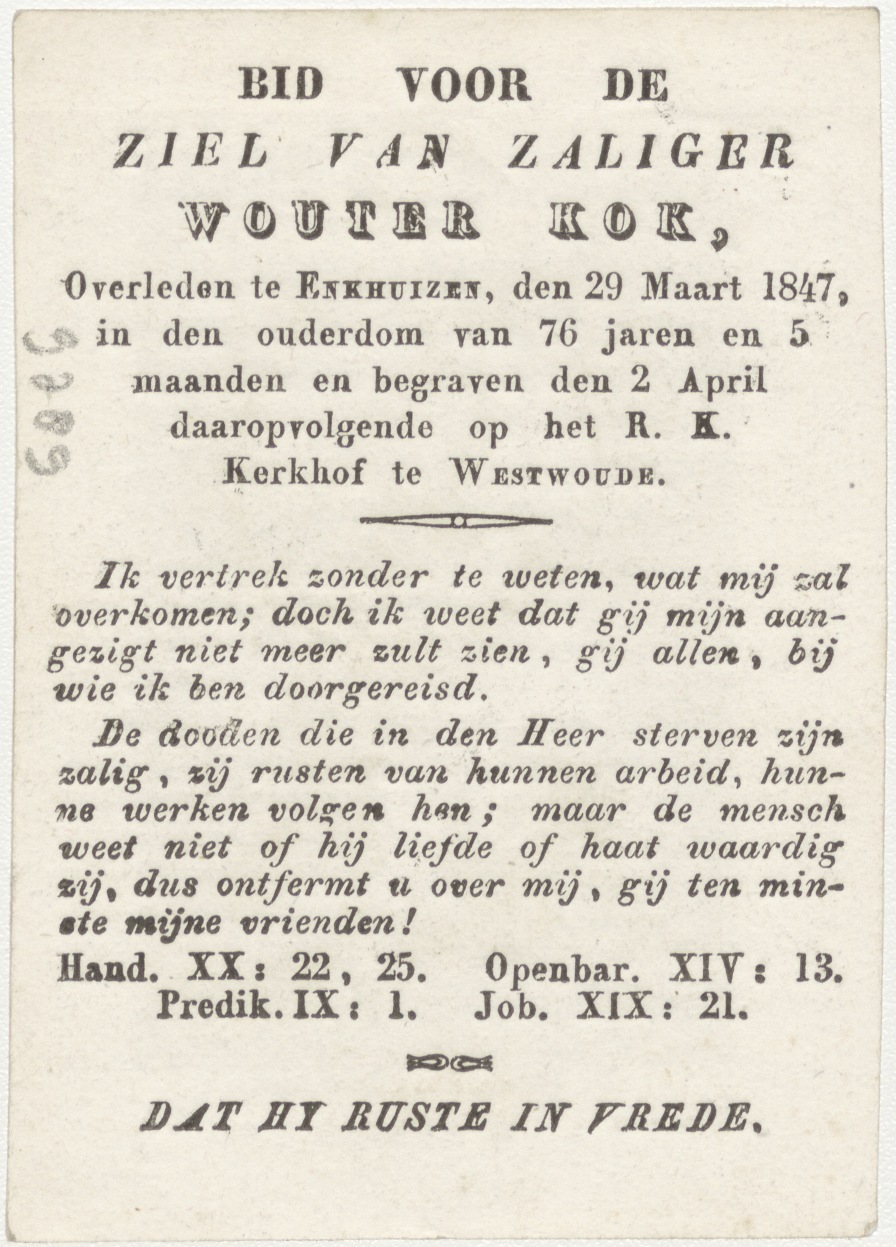 Annunciatie, kz. Bid voor ziel Kok (+1847) Enkhuizen, Westwoude
