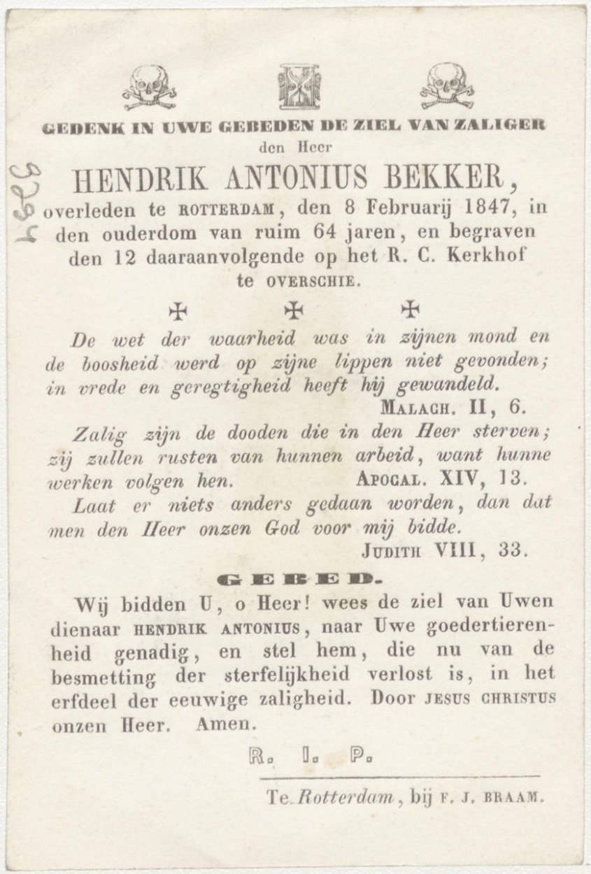 H. Theresia (Frans), kz. Bid voor ziel Bekker (+1847) Rotterdam