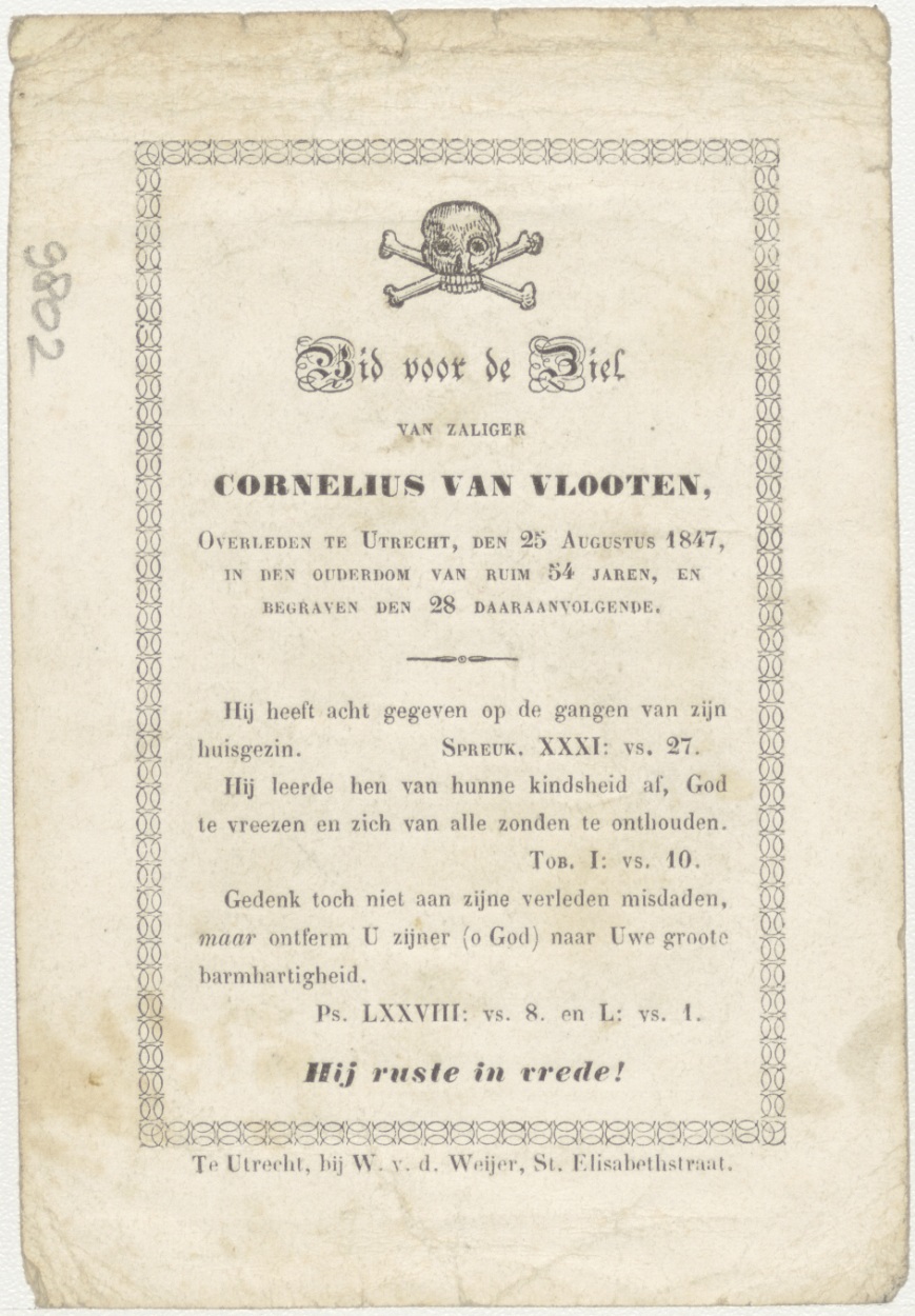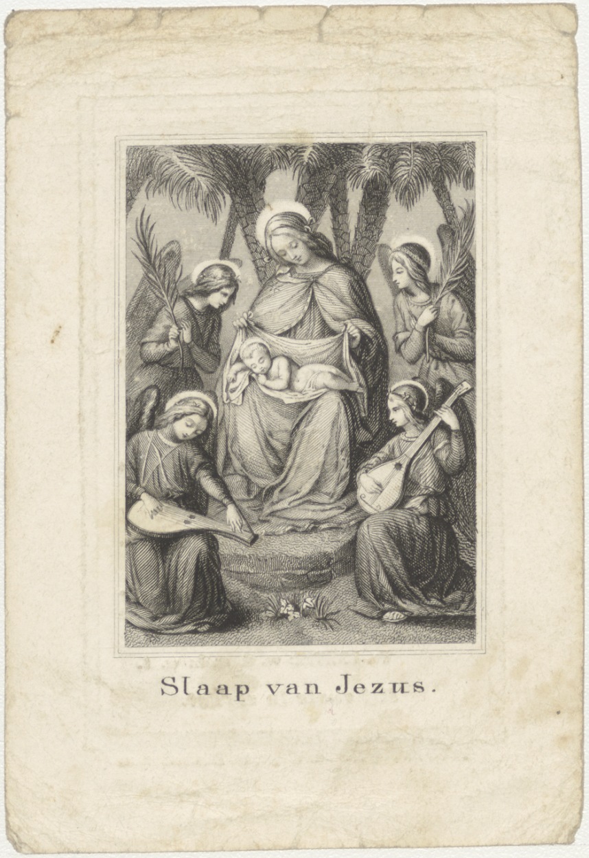 Slaap van Christus, Maria met Christuskind, kz. Bid voor ziel Van Vlooten (+1847) Utrecht