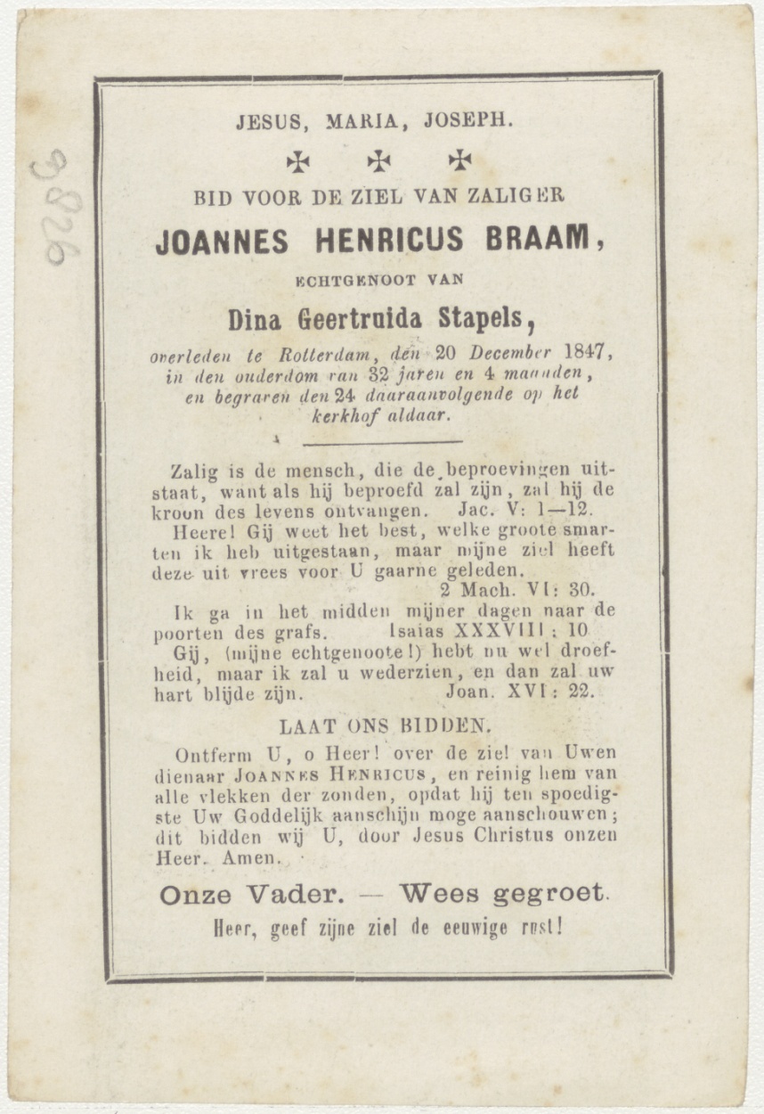 Christus met kruis ontmoet Maria (Frans), kz. Bid voor ziel Braam-Stapels (+1847) Rotterdam