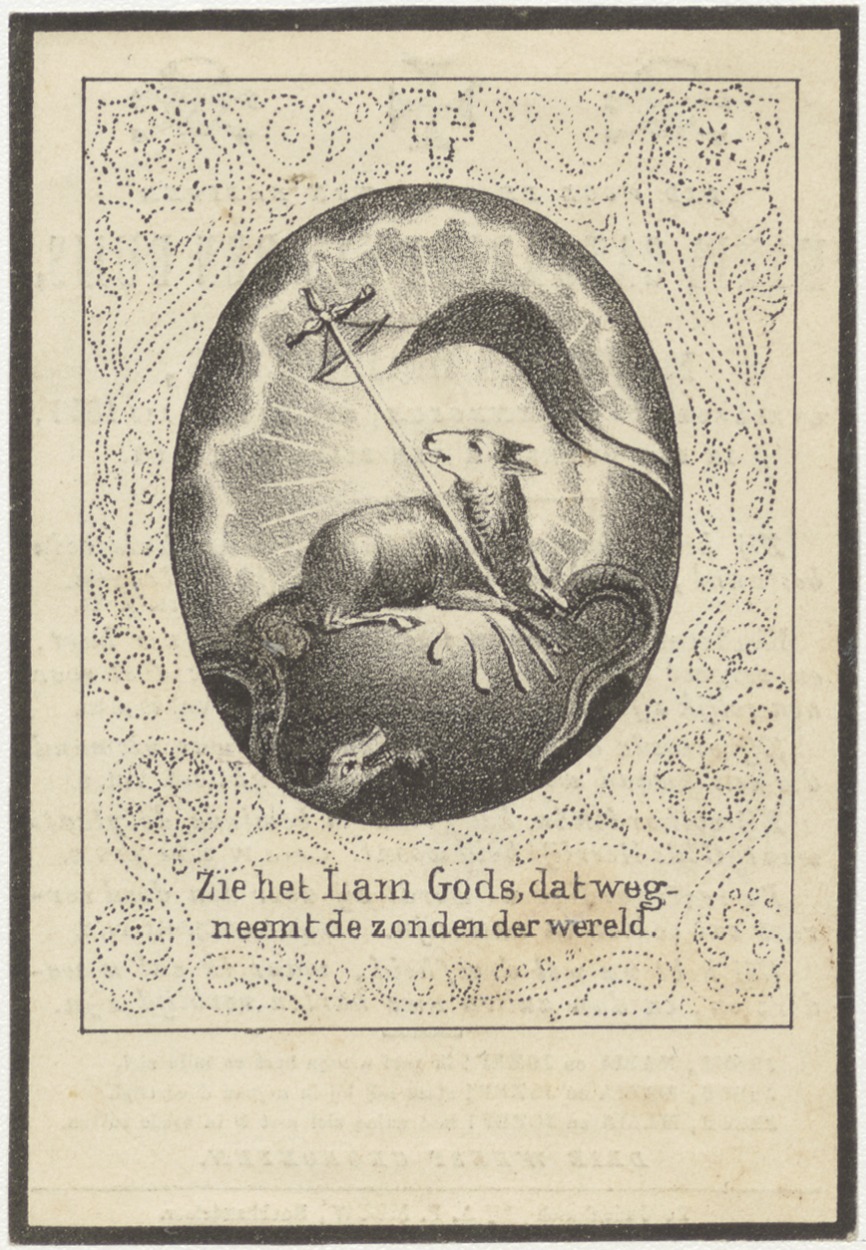 Zie het Lam Gods dat wegneemt de zonden der wereld, kz. Bid voor ziel Huybrechts-van den Buys (+1848)