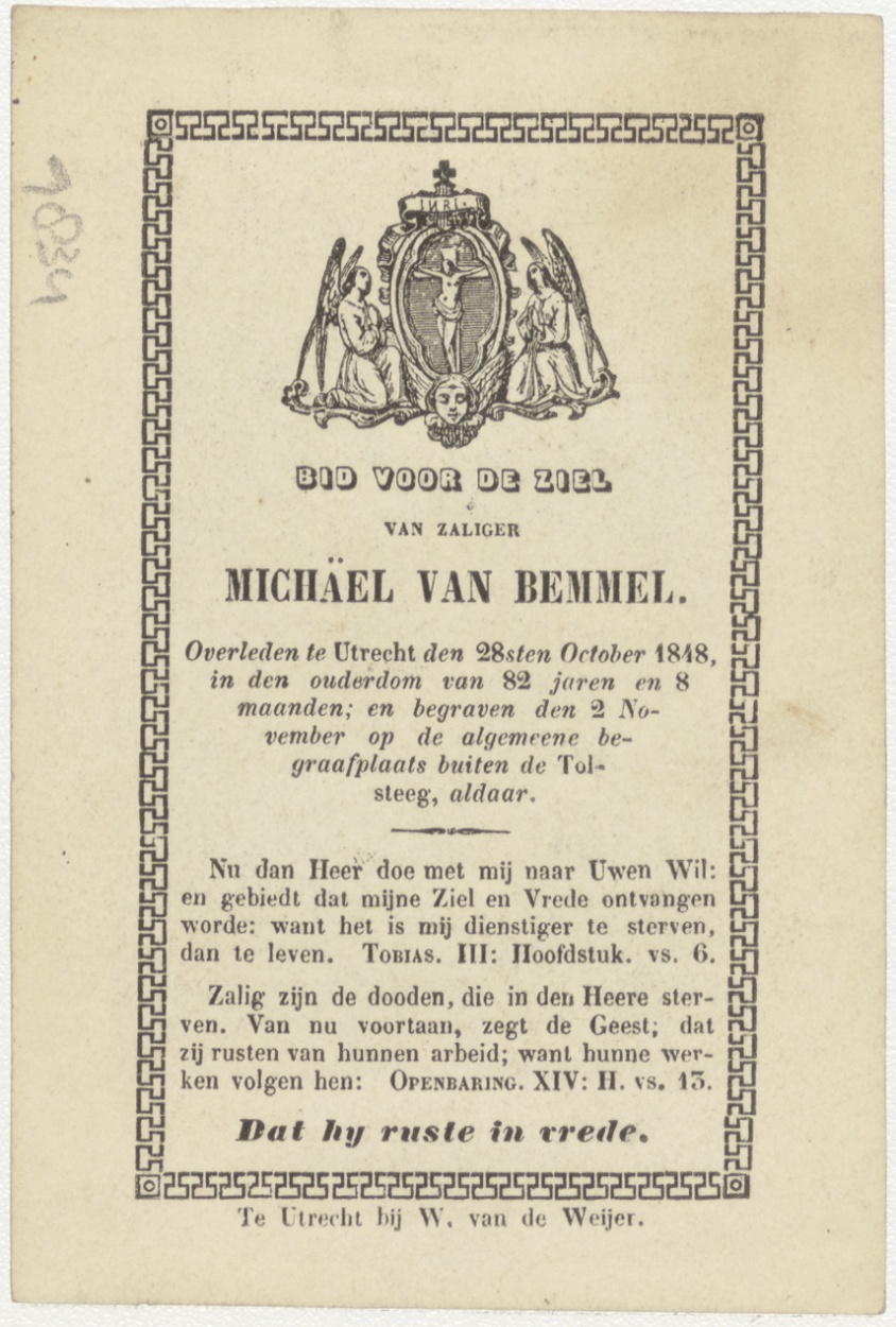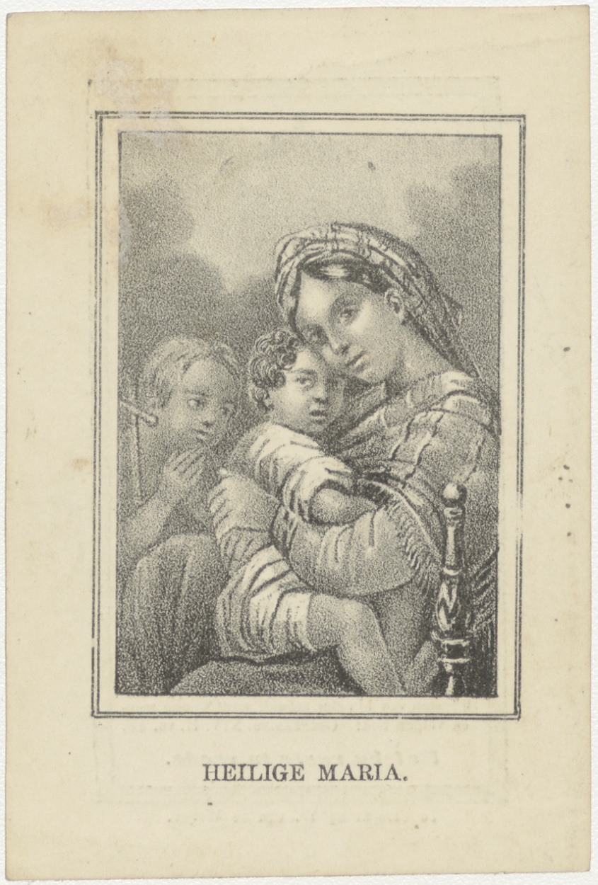 H. Maria met Christuskind en Johannes, kz. Bid voor ziel Van Bemmel (+1848) Utrecht