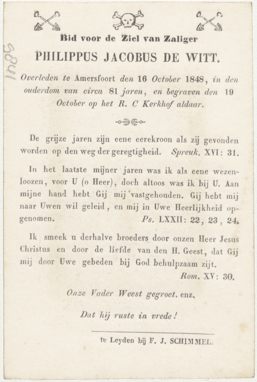 Arriveren (Frans), aankomst bij God, Maria en Christus in de hemel, kz. Bid voor ziel Philippus Jacobus de Witt (+1848) Amersfoort