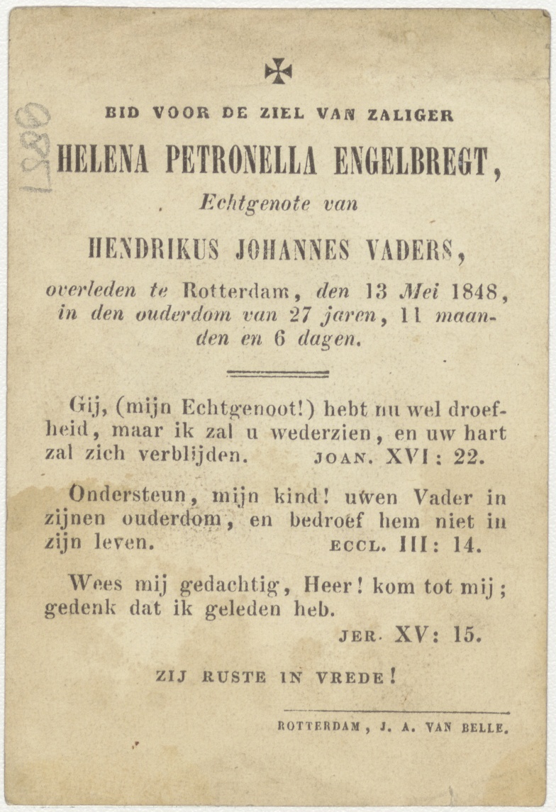 H. Elisabeth, kz. Bid voor ziel Engelbregt-Vaders (+1848) Rotterdam