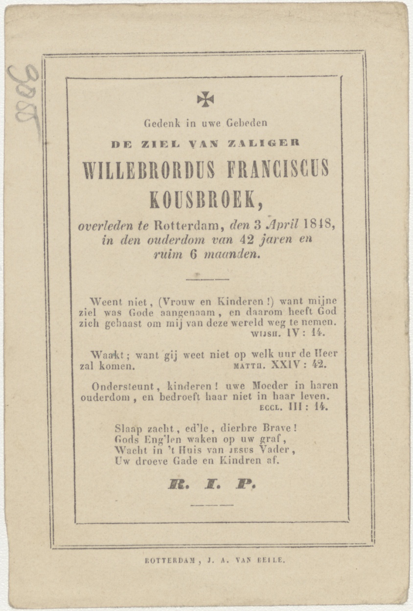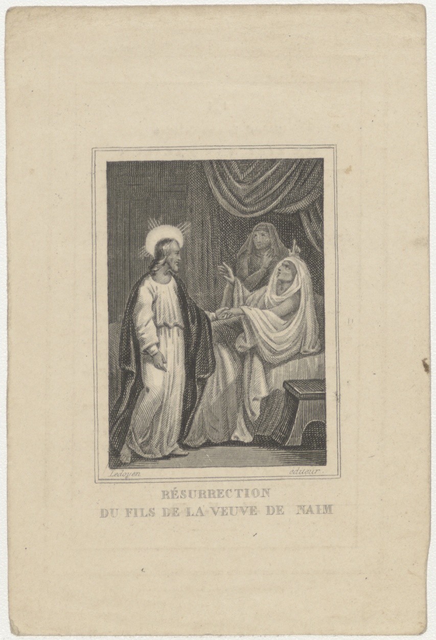 Wonder van Christus, verrijzenis van het kind van de weduwe van Naïn (Frans), kz. Bid voor ziel Willebrordus Franciscus Kousbroek (+1848) Rotterdam