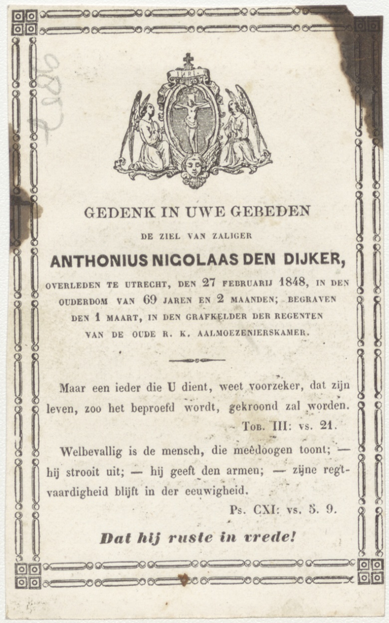 Maria moeder van Christus (Frans), kz. Bid voor ziel Den Dijker (+1848) Utrecht