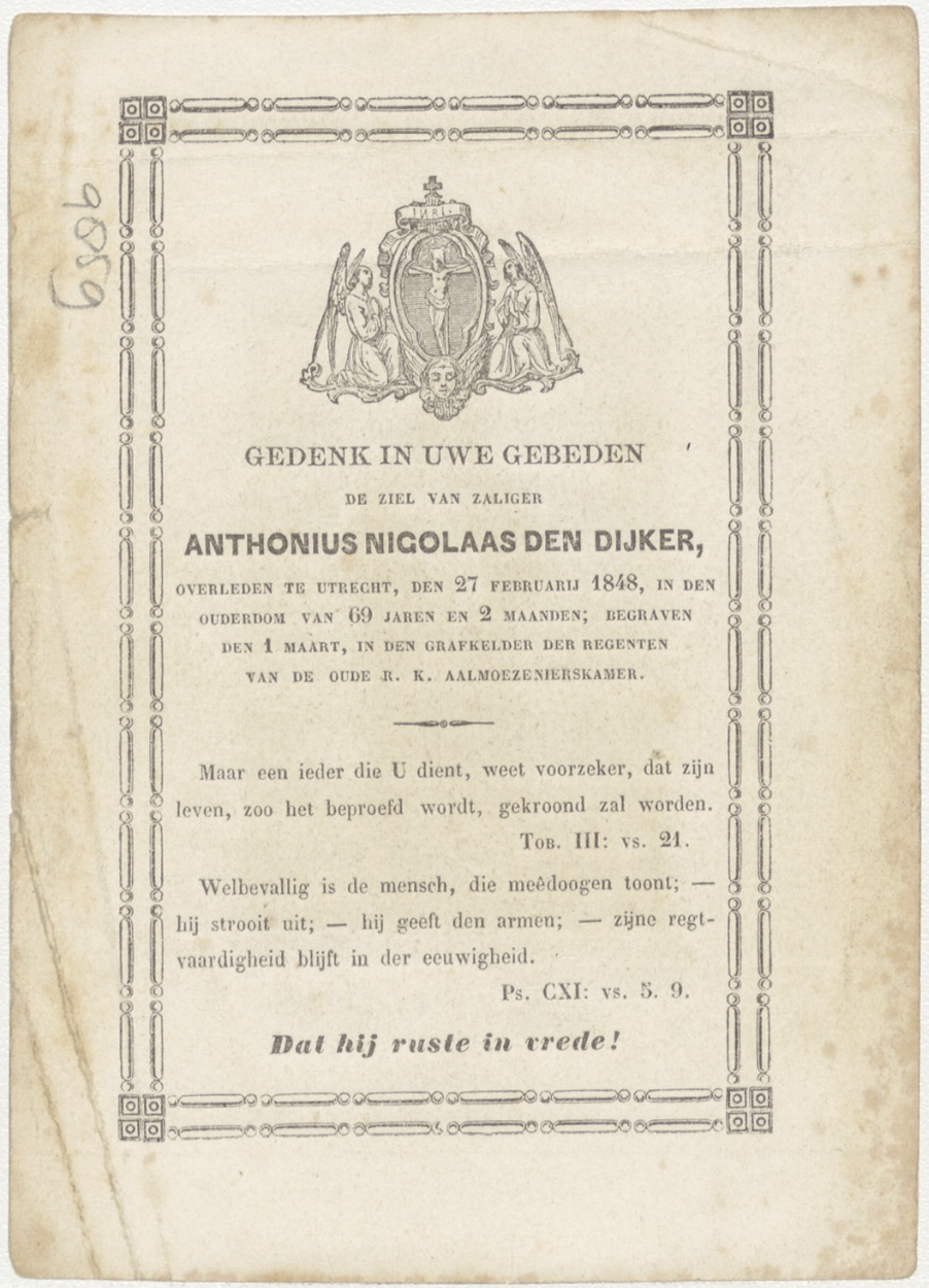H. Maria, moeder Gods (Frans), kz. Bid voor ziel Den Dijker (+1848) Utrecht