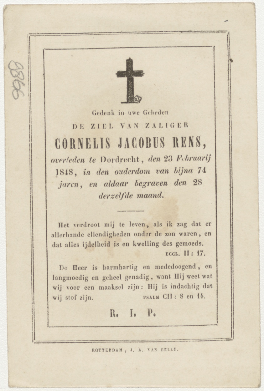 H. Elisabeth, koningin van Portugal (Frans), kz. Bid voor ziel Cornelis Jacobus Rens (+1848) Dordrecht