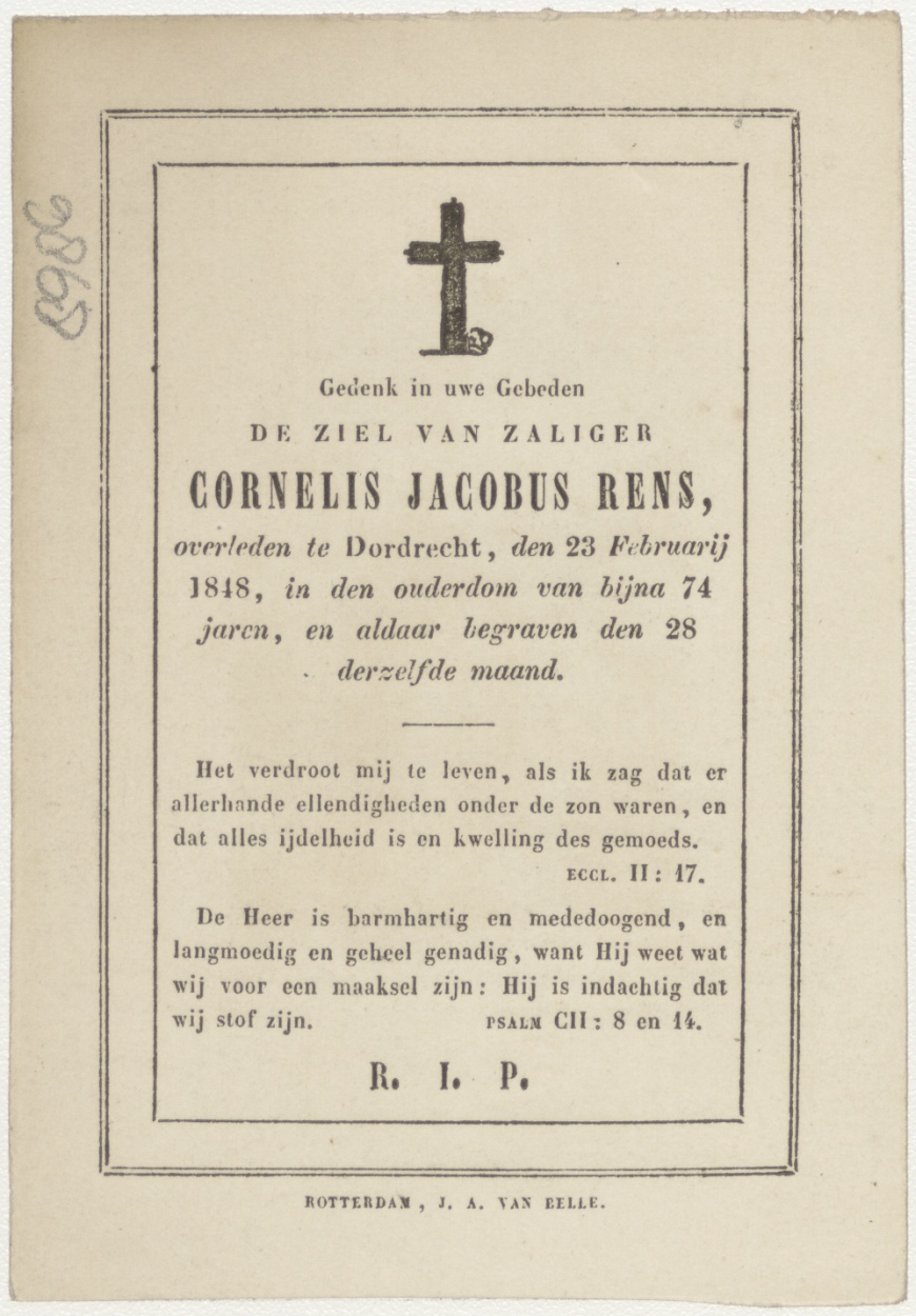 H. Rosa van Lima (Frans), kz. Bid voor ziel Cornelis Jacobus Rens (+1848) Dordrecht
