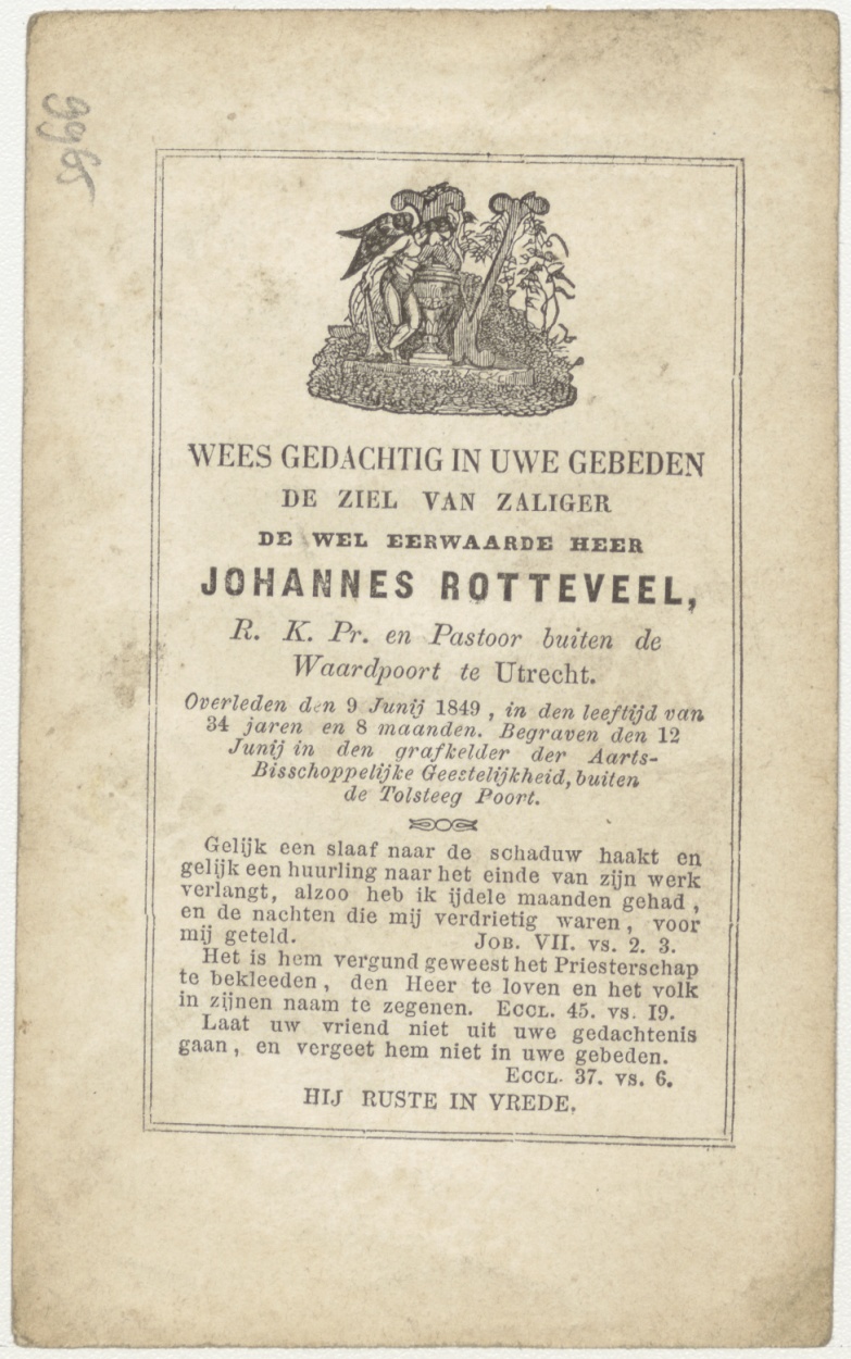 H. Drie-eenheid met Maria (Frans), kz. Religieus; bid voor ziel Johannes Rotteveel (+1849) pastoor Waardpoort te Utrecht