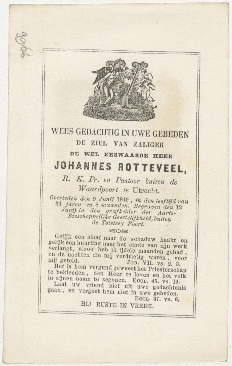 Gods feest, Alziend oog (Frans), kz. Religieus; bid voor ziel Johannes Rotteveel (+1849) pastoor Waardpoort te Utrecht