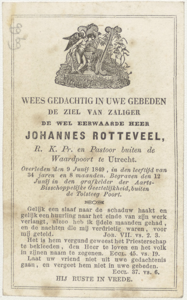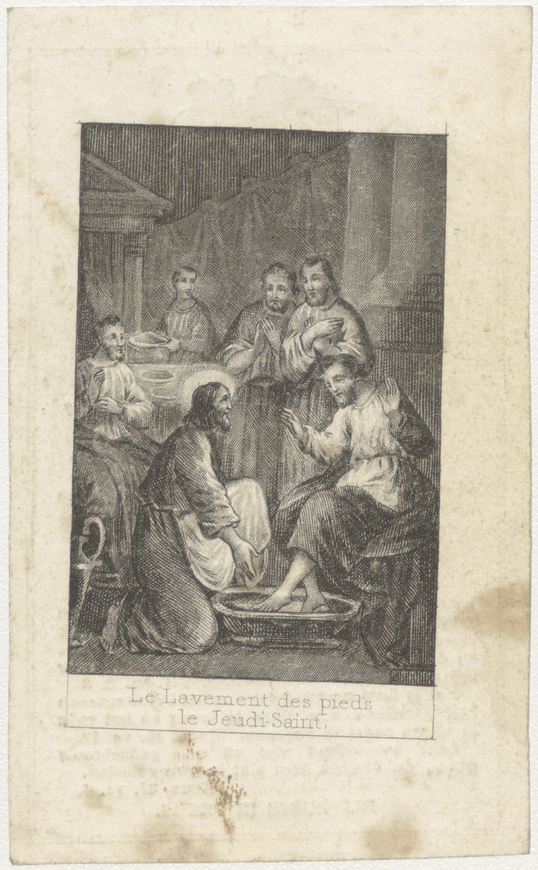 Christus wast de voeten van zijn apostelen (Frans), kz. Religieus; bid voor ziel Johannes Rotteveel (+1849) pastoor Waardpoort te Utrecht
