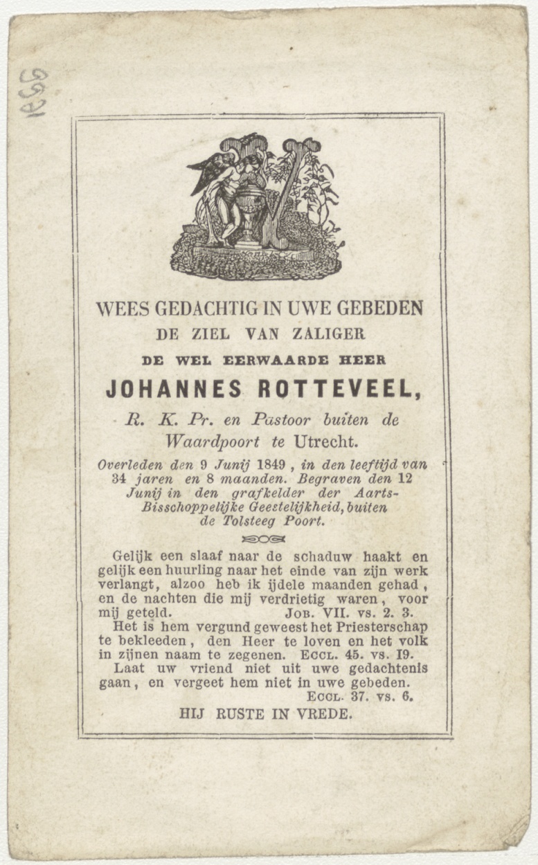 H. Familie (Frans), kz. Religieus; bid voor ziel Johannes Rotteveel (+1849) pastoor Waardpoort te Utrecht