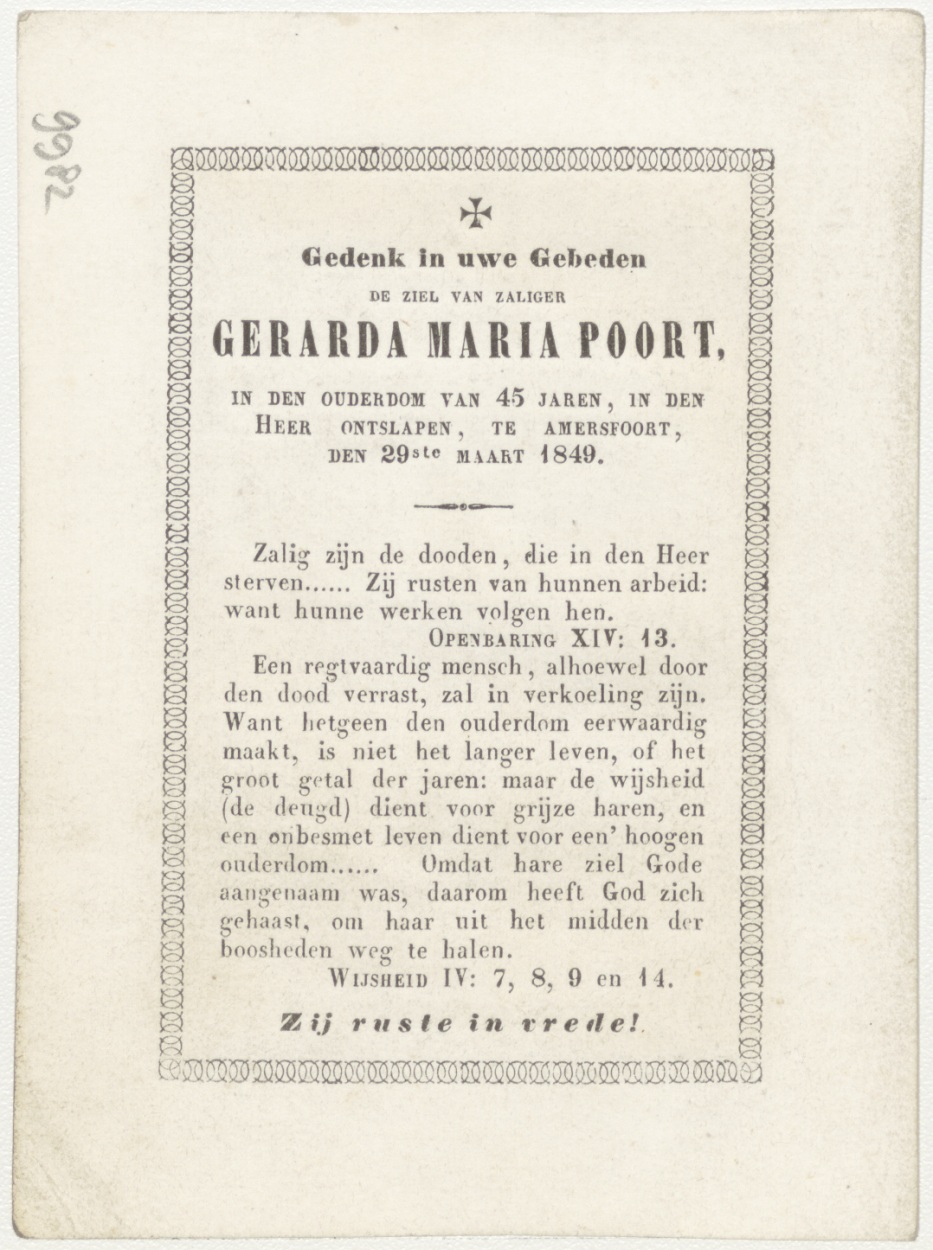 Presentatie van Christuskind in de tempel (Frans), kz. Bid voor ziel Poort (+1849) Amersfoort