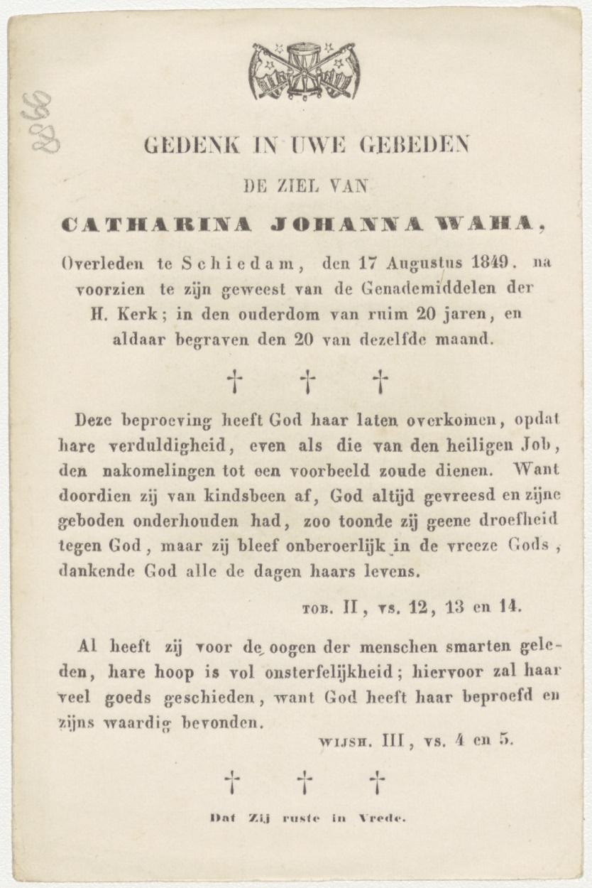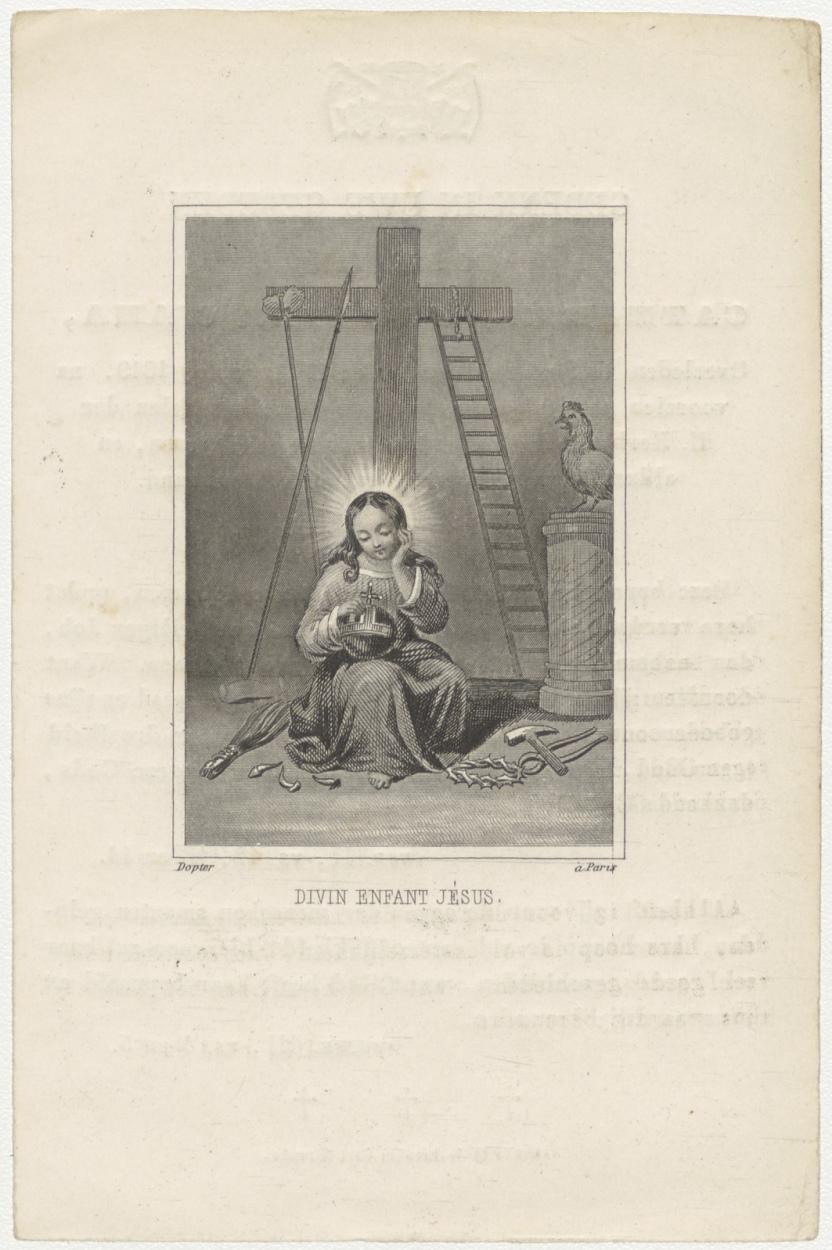 Christuskind met martelwerktuigen (Frans), kz. Bid voor ziel Waha (+1849) Schiedam