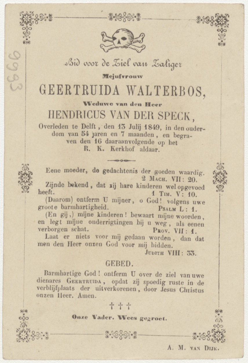 H. Colombo, kz. Bid voor ziel Walterbos-van der Speck (+1849) Delft