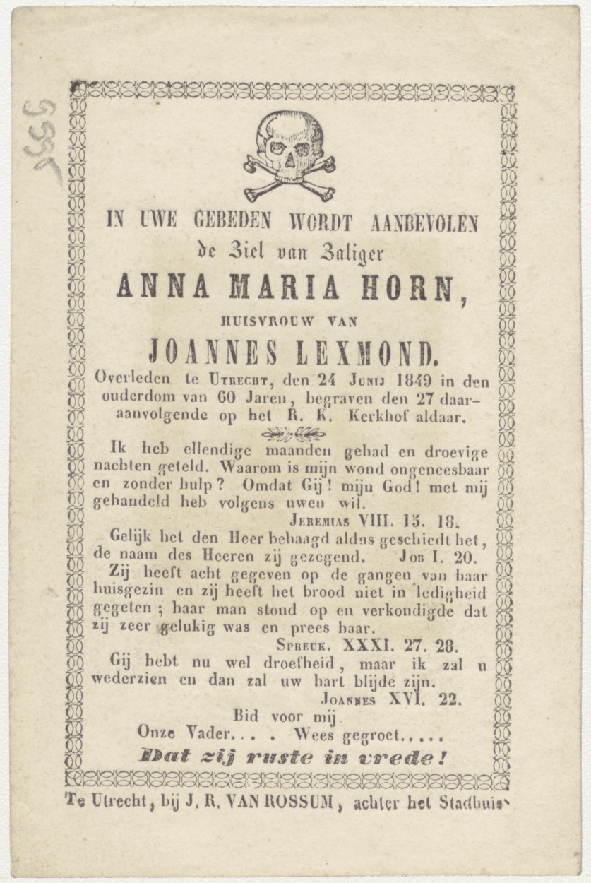H. Paulus (Frans), kz. Bid voor ziel Lexmond-Horn (+1849) Utrecht