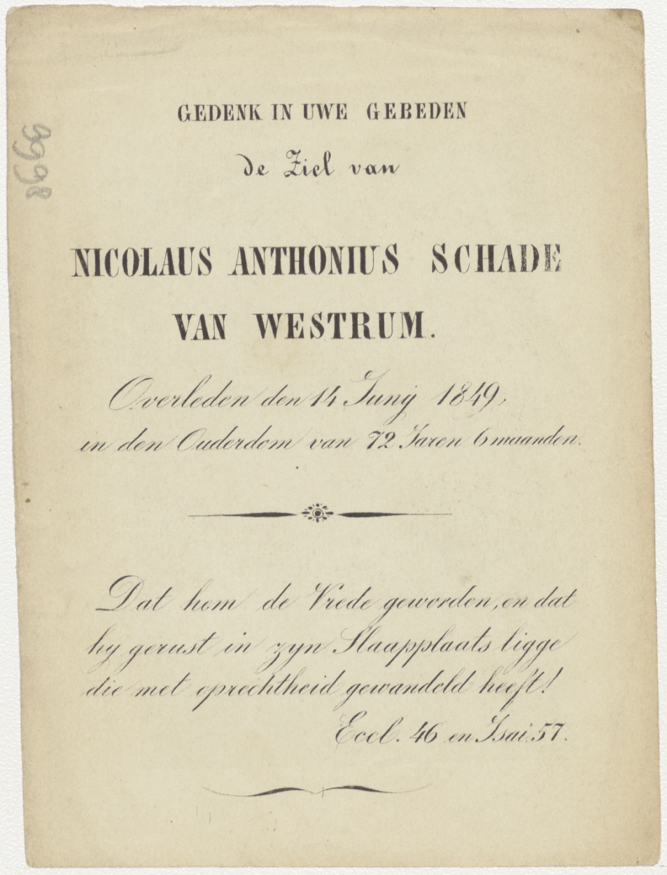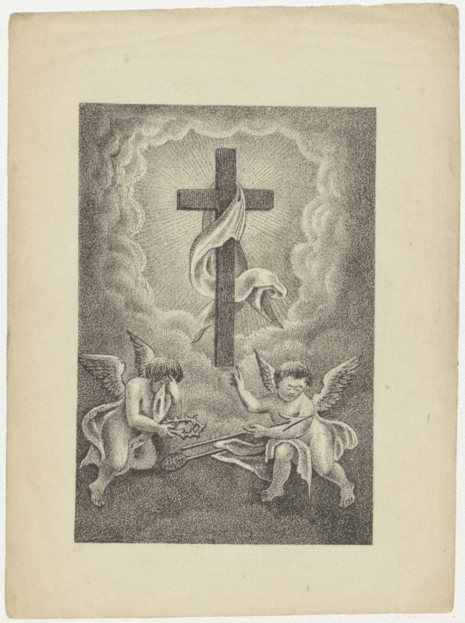 Kruis met twee engelen, kz. Bid voor ziel Schade van Westrum (+1849)