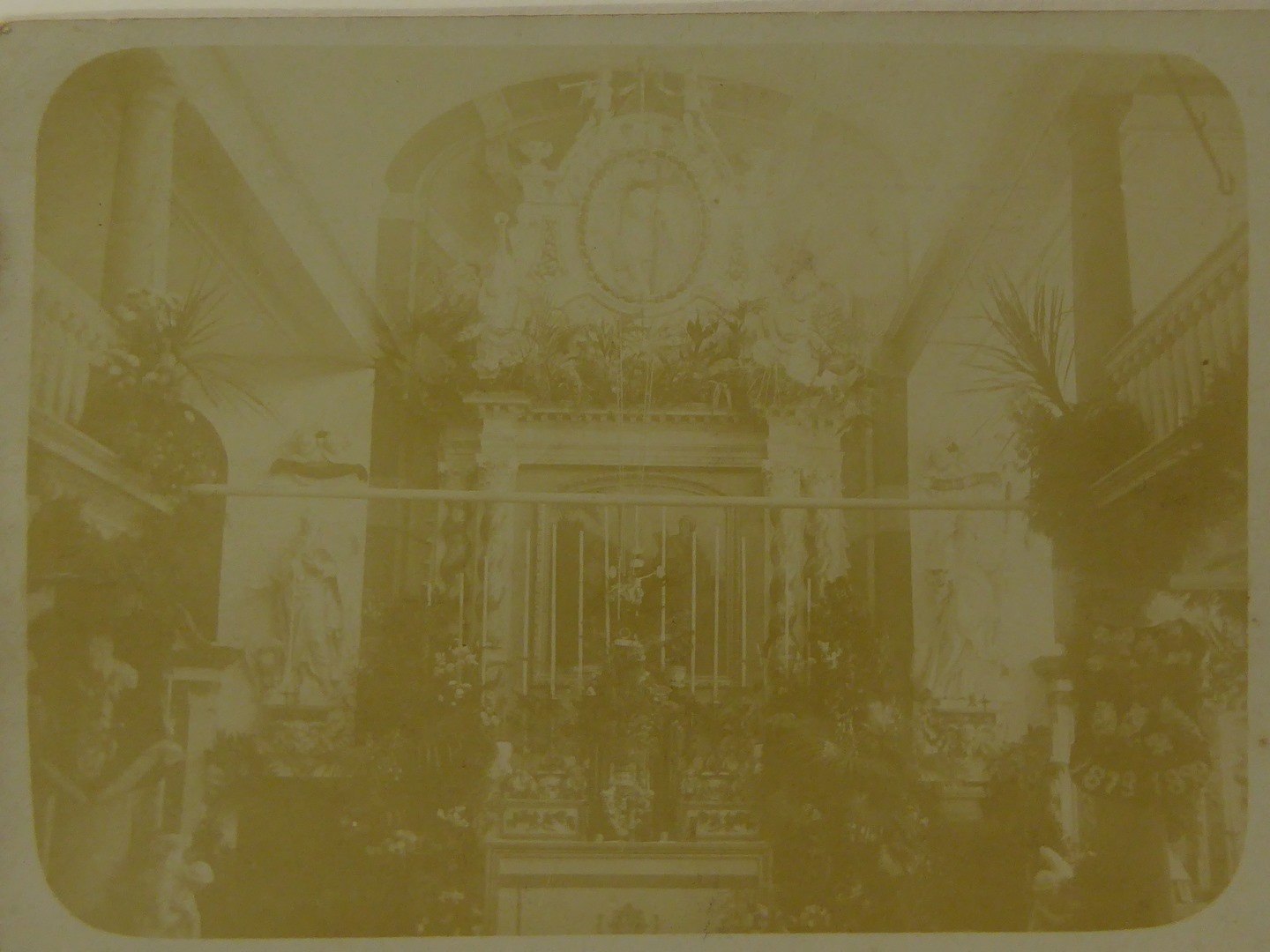 Prentbriefkaart met Oud Katholieke Johannes en Willibrorduskerk Amsterdam, gezicht op het altaar