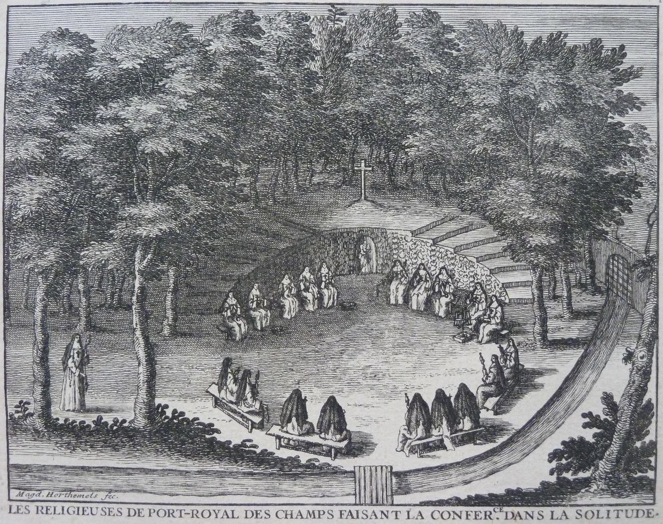 Nonnen van Port-Royal in een vergadering bijeen in de open lucht