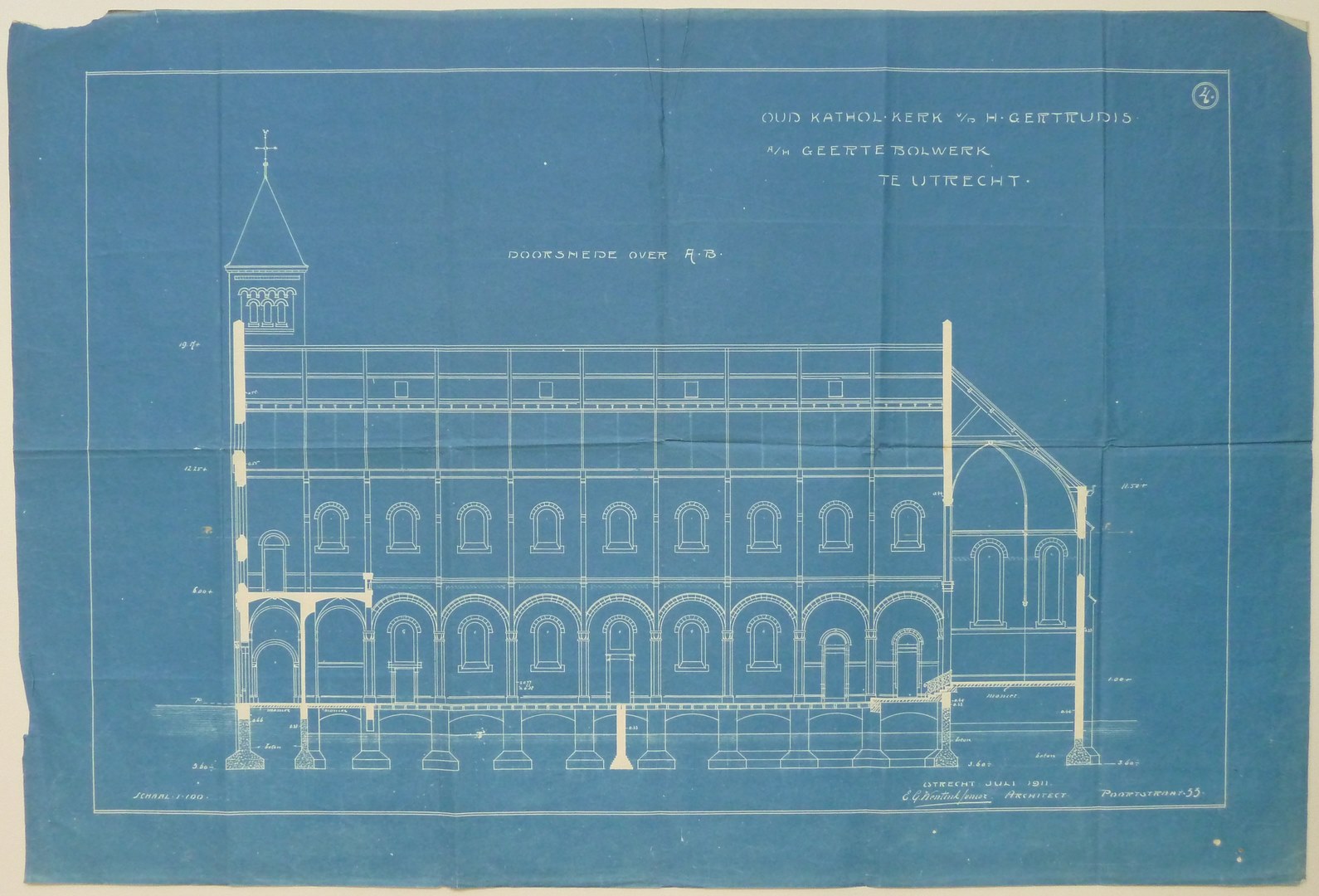 Utrecht, St. Gertrudiskerk (serie): doorsnede over AB
