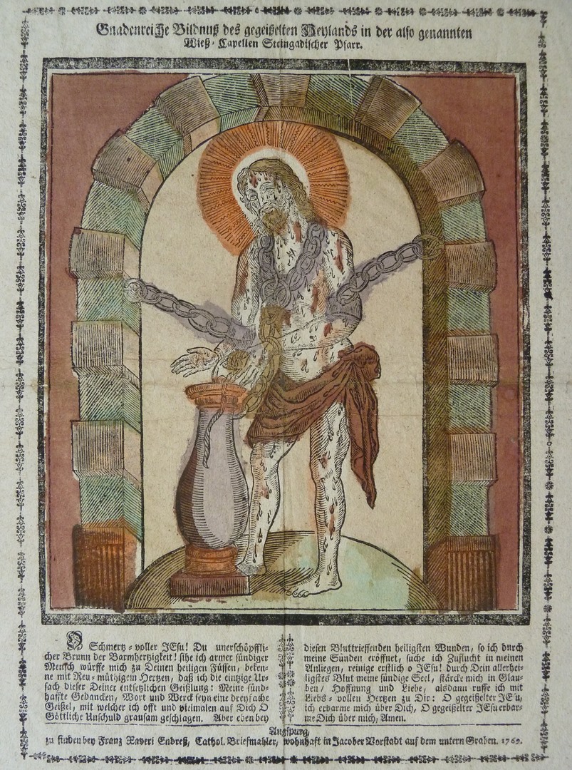 Gegeselde Christus, staande gebonden aan kettingen in poort