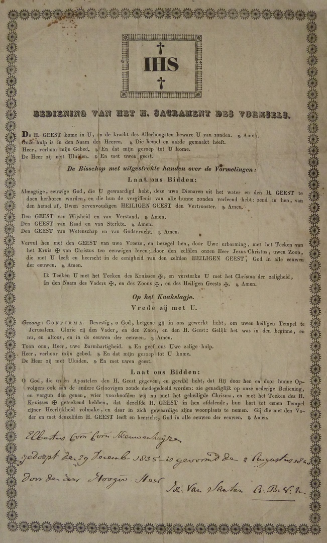 Bediening van het H. Sacrament des vormsels ... Elbertus ... Nieuwenhuijzen ... van Santen ...