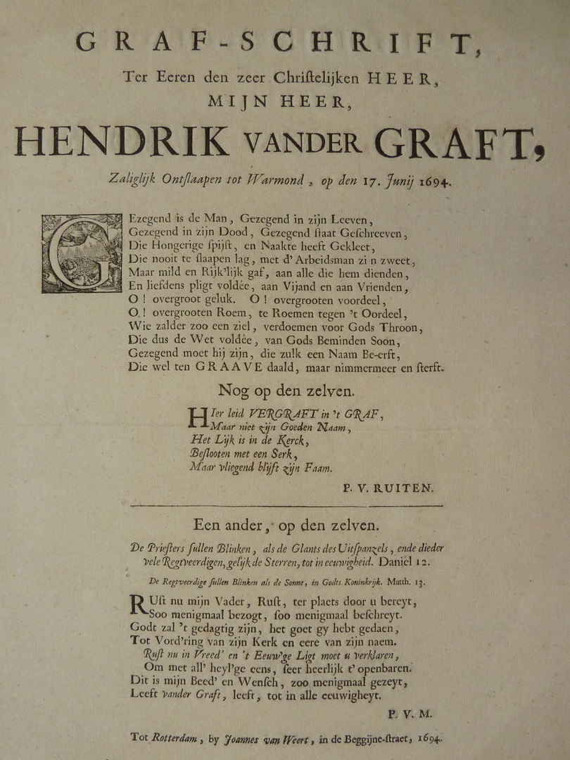 Grafschrift ... Hendrik van der Graft ...