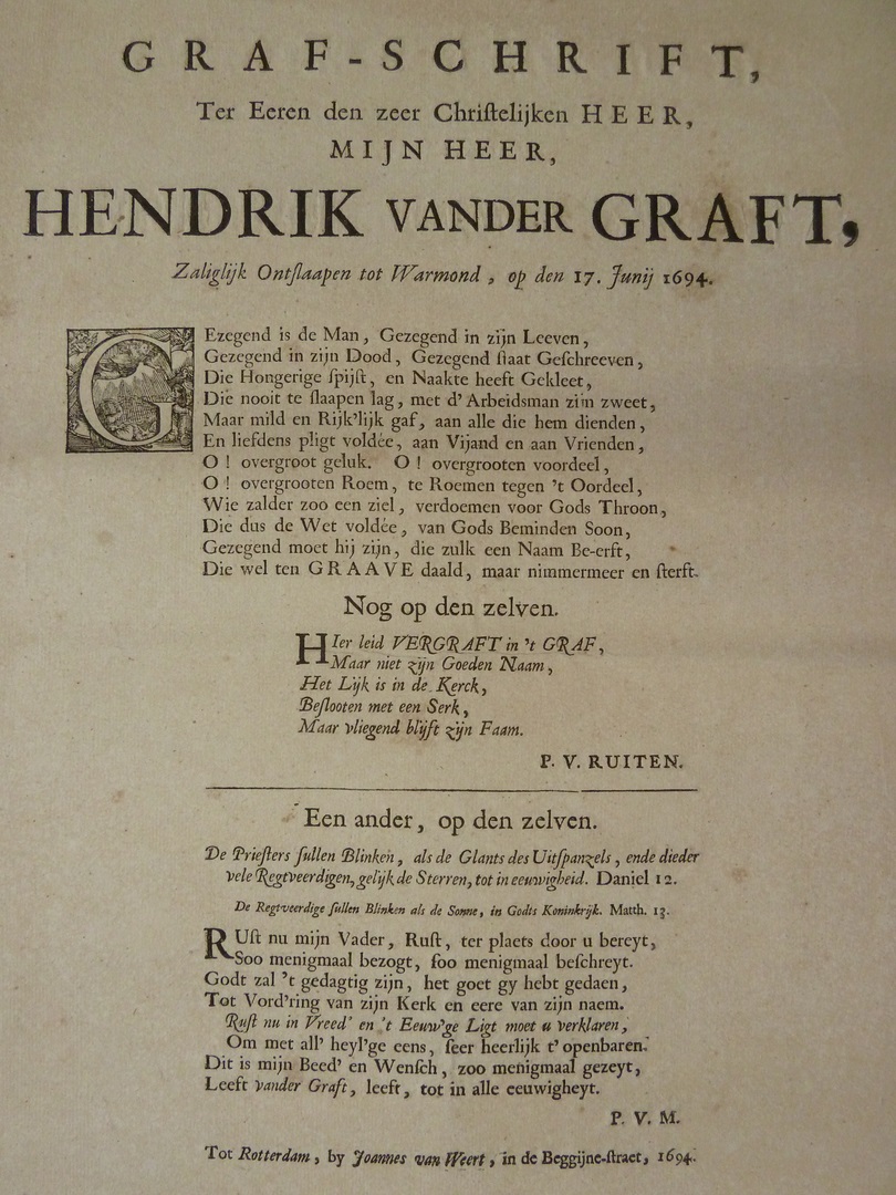 Grafschrift ... Hendrik van der Graft ...