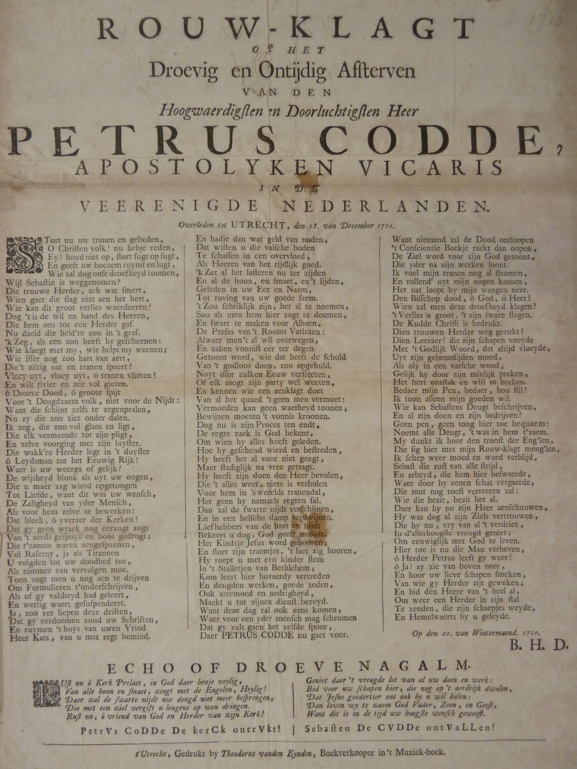 Rouwklagt ... Petrus Codde ... Stort nu uw tranen en gebeden ...