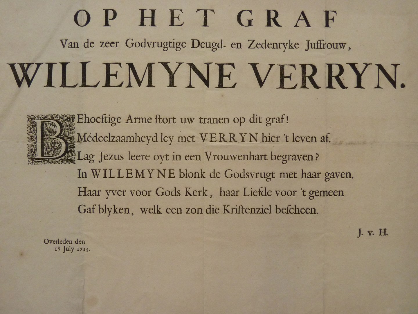Op het graf ... Godvrugtige deugd- en zedenryke juffrouw Willemyne Verryn ...