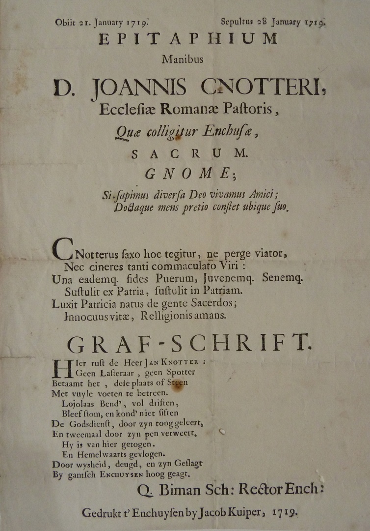 Obiit 21 January 1719 ... D. Joannis Cnotteri ... Hier rust de heer Jan Knotter: ...