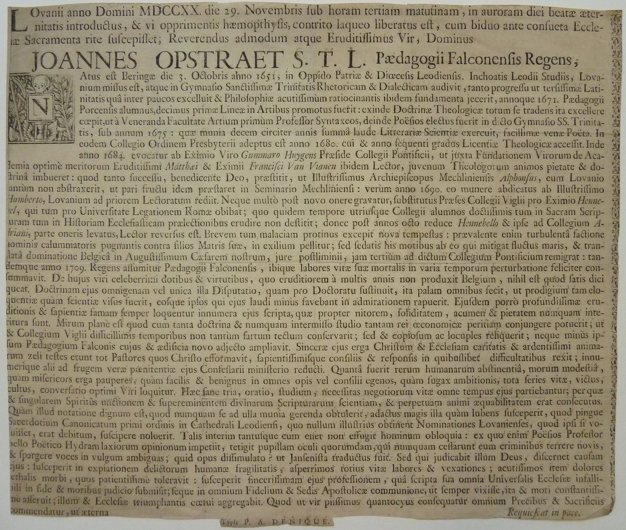 Lovanii anno Domini MDCCXX ... Joannes Opstraet S.T.L. Paedagogii Falconensis Regens, ...