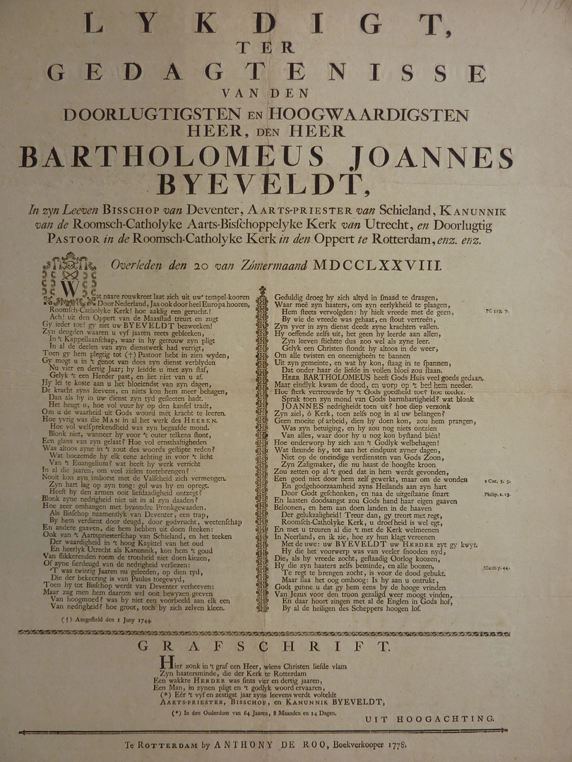 Lykdigt ... Bartholomeus Joannes Byeveldt, ... bisschop van Deventer, ...