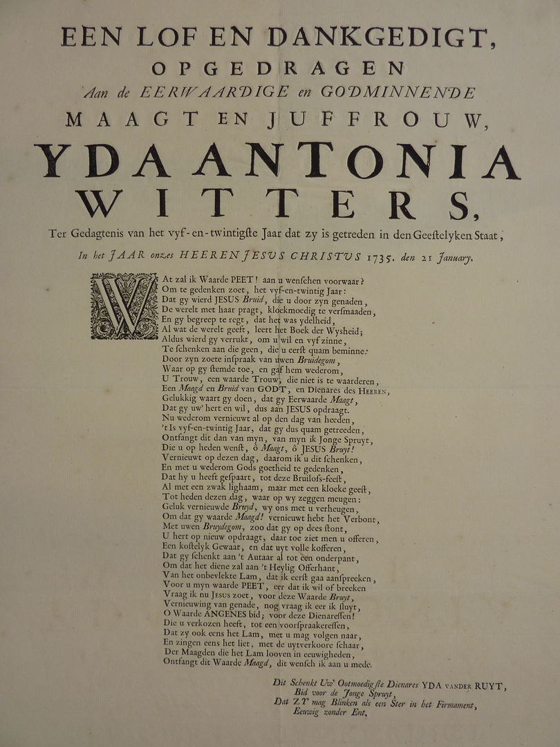 Een lof en dankgedigt, ... Yda Antonia Witters .. vyf- en twintigste jaar .. geestelyken staat ...